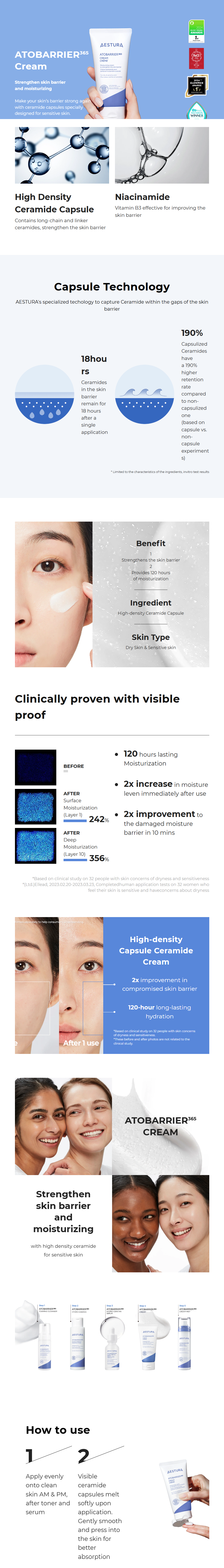 Through 40 years of dedicated research on sensitive skin, AESTURA has launched the 2nd generation evolved moisturizer, ATOBARRIER365 Cream. The concentrated, long-chain and high-density ceramide capsules help repair your compromised skin barrier.