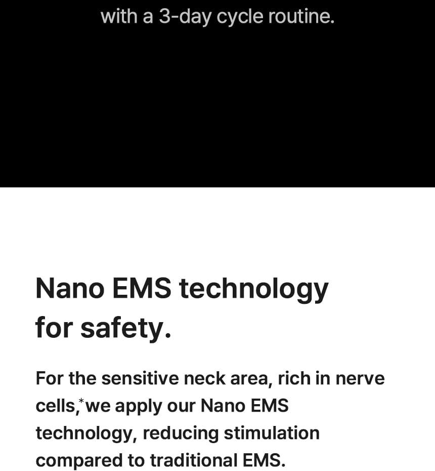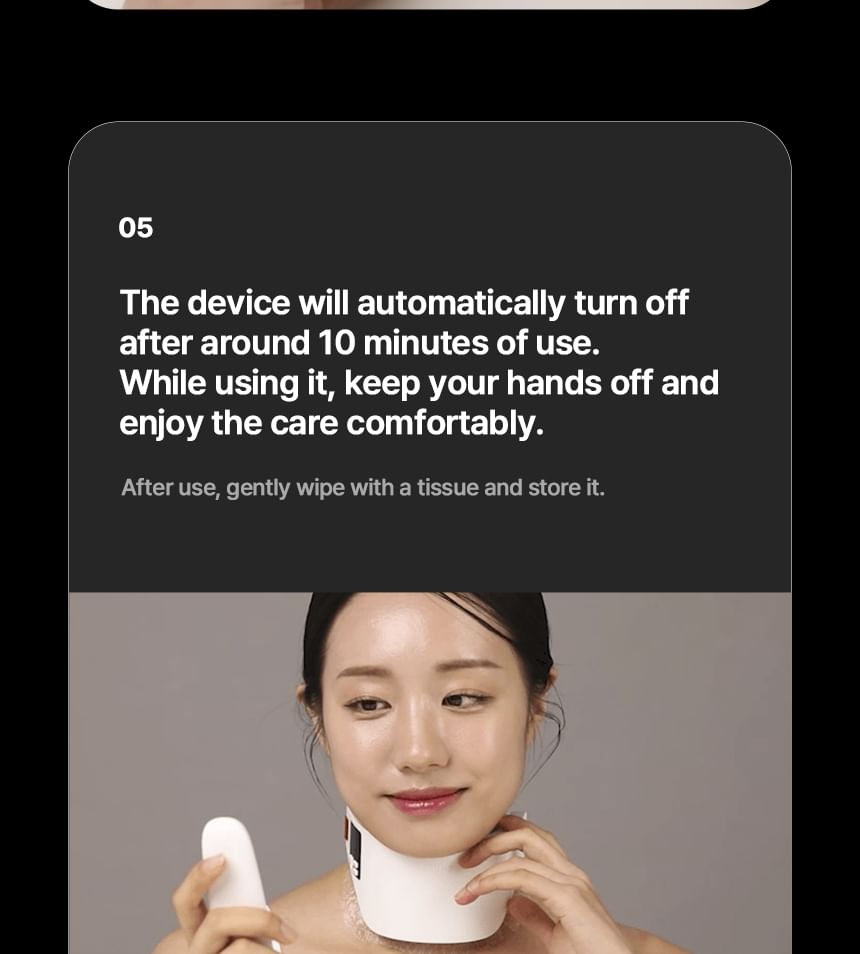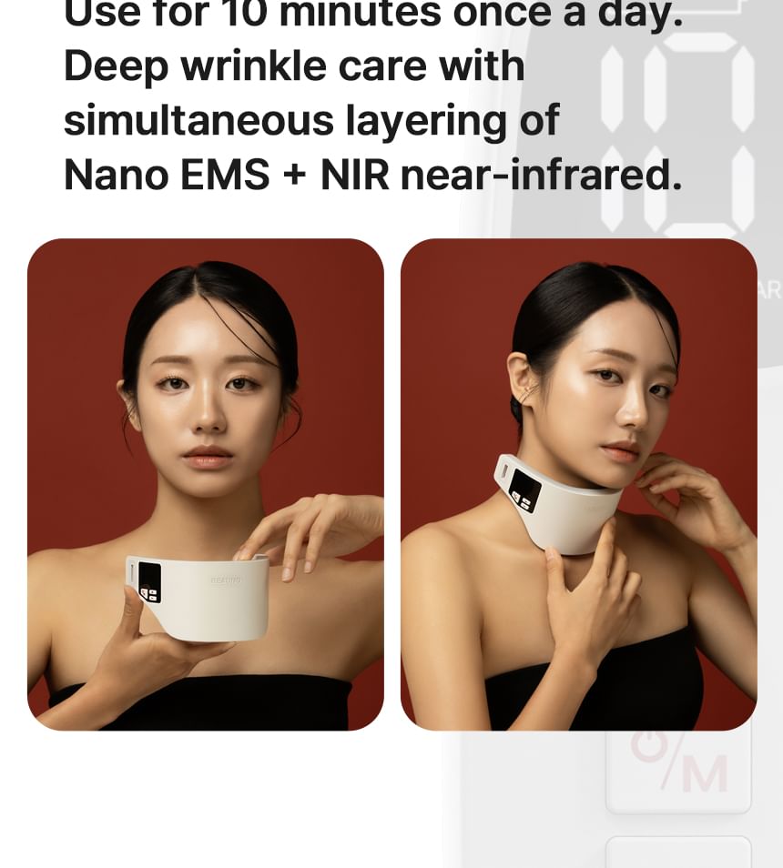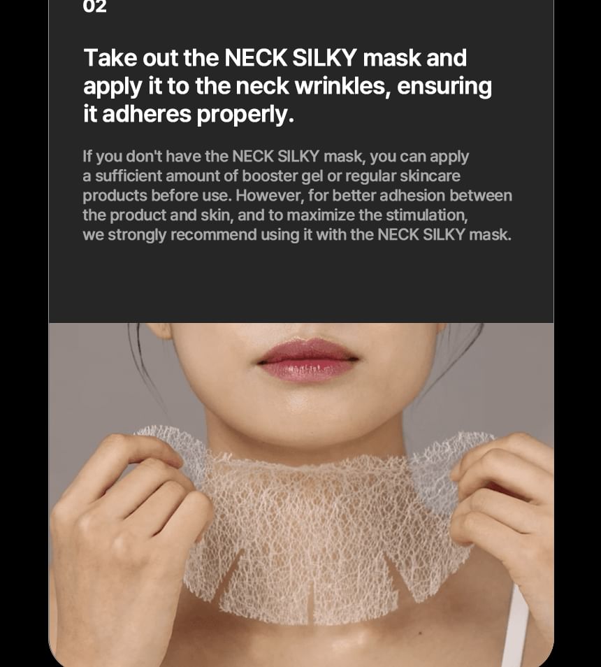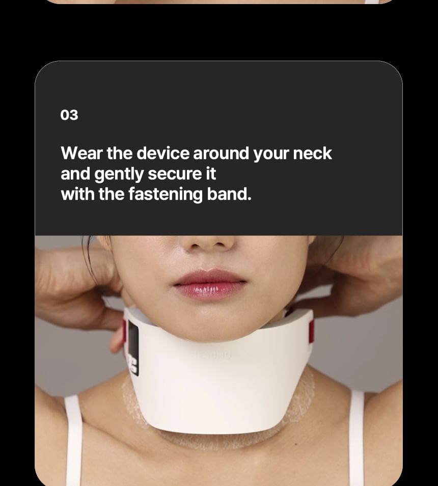 This innovative neck care solution combines MTS and EMS technology to enhance skin elasticity and support lifting.