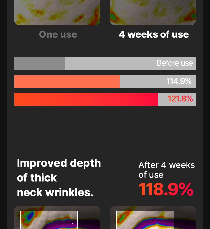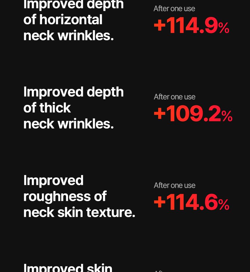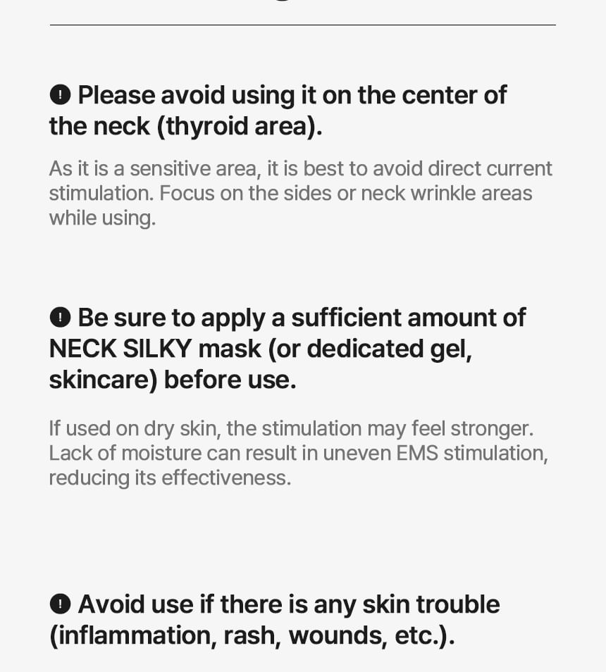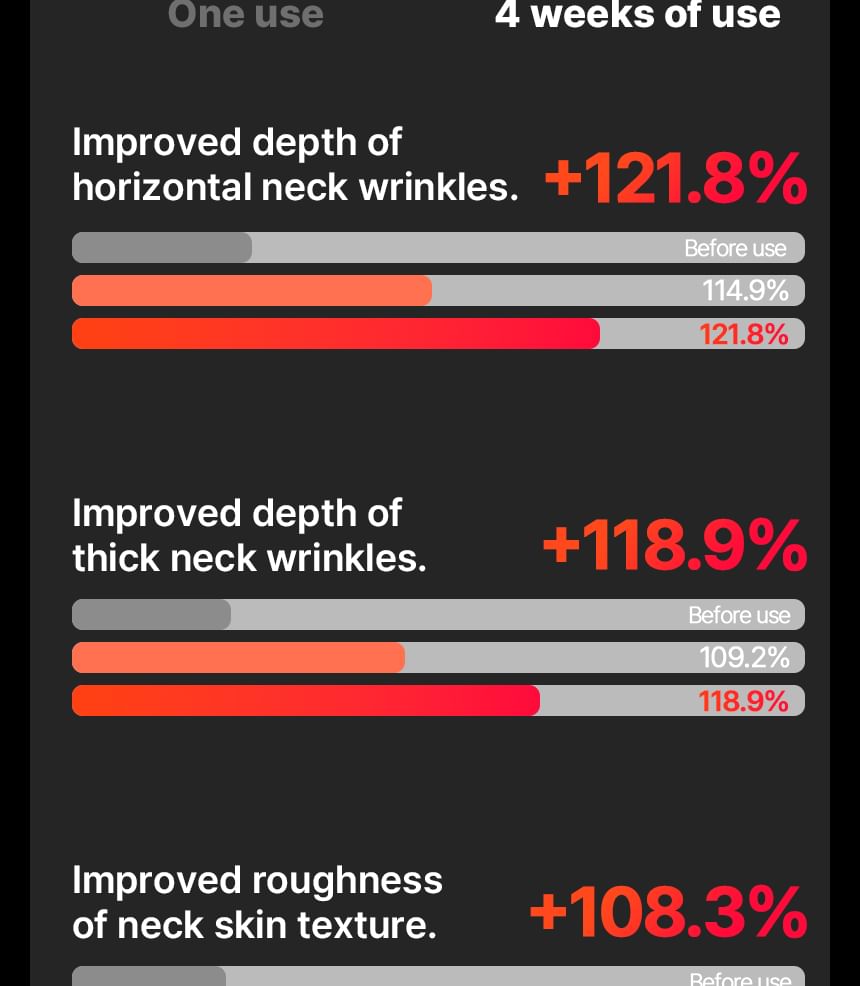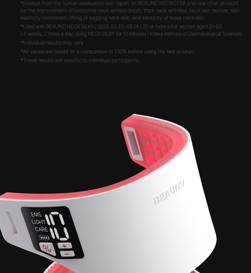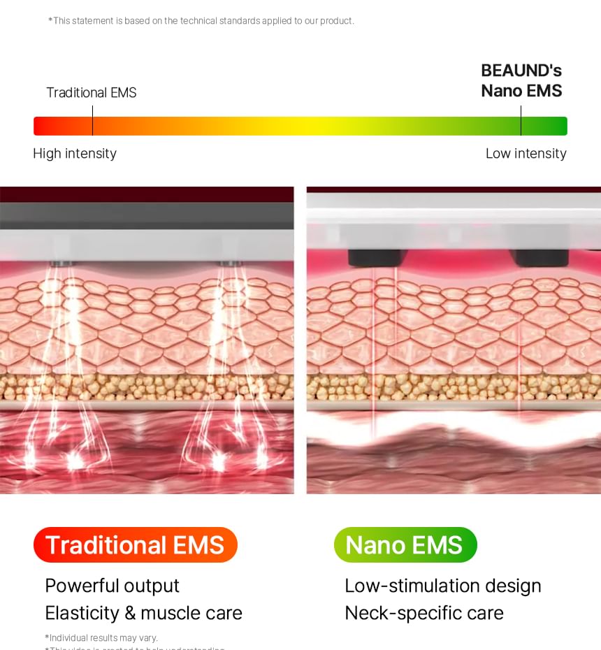 This innovative neck care solution combines MTS and EMS technology to enhance skin elasticity and support lifting.