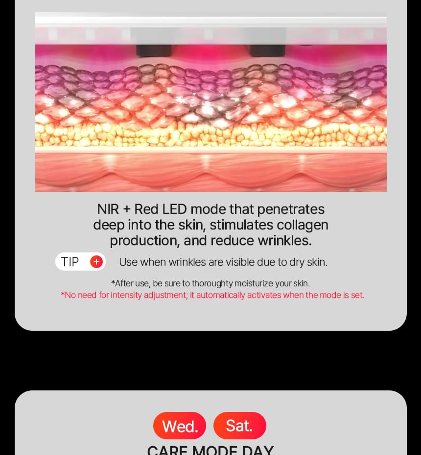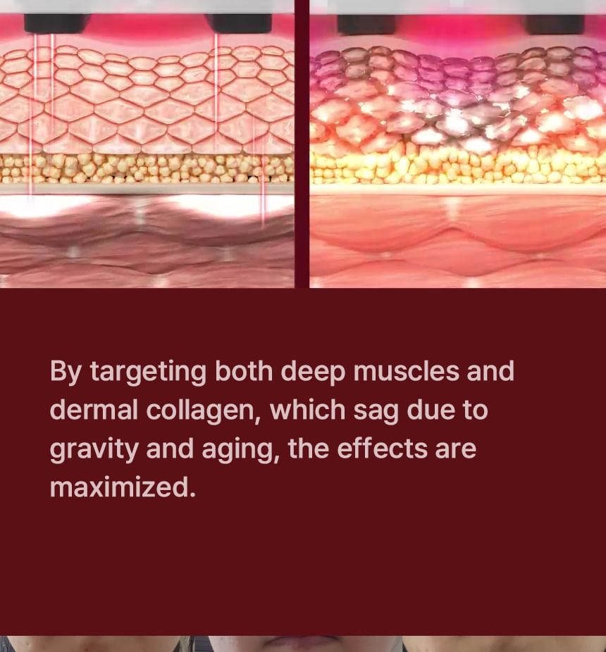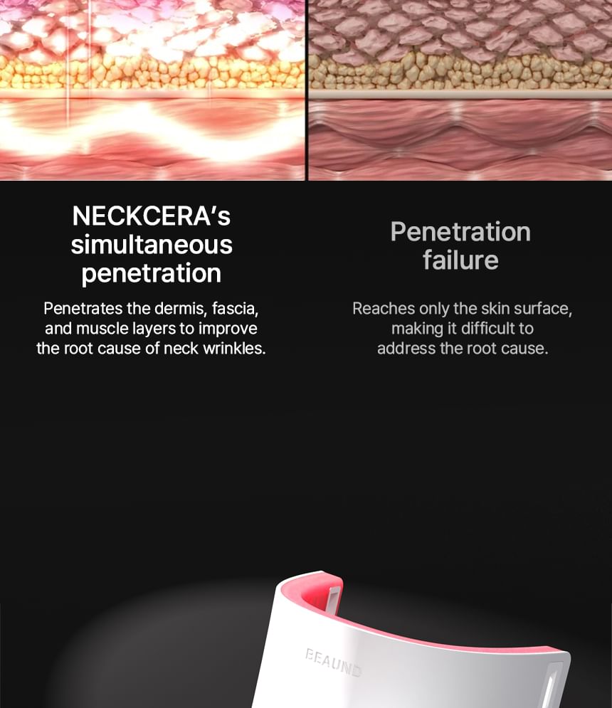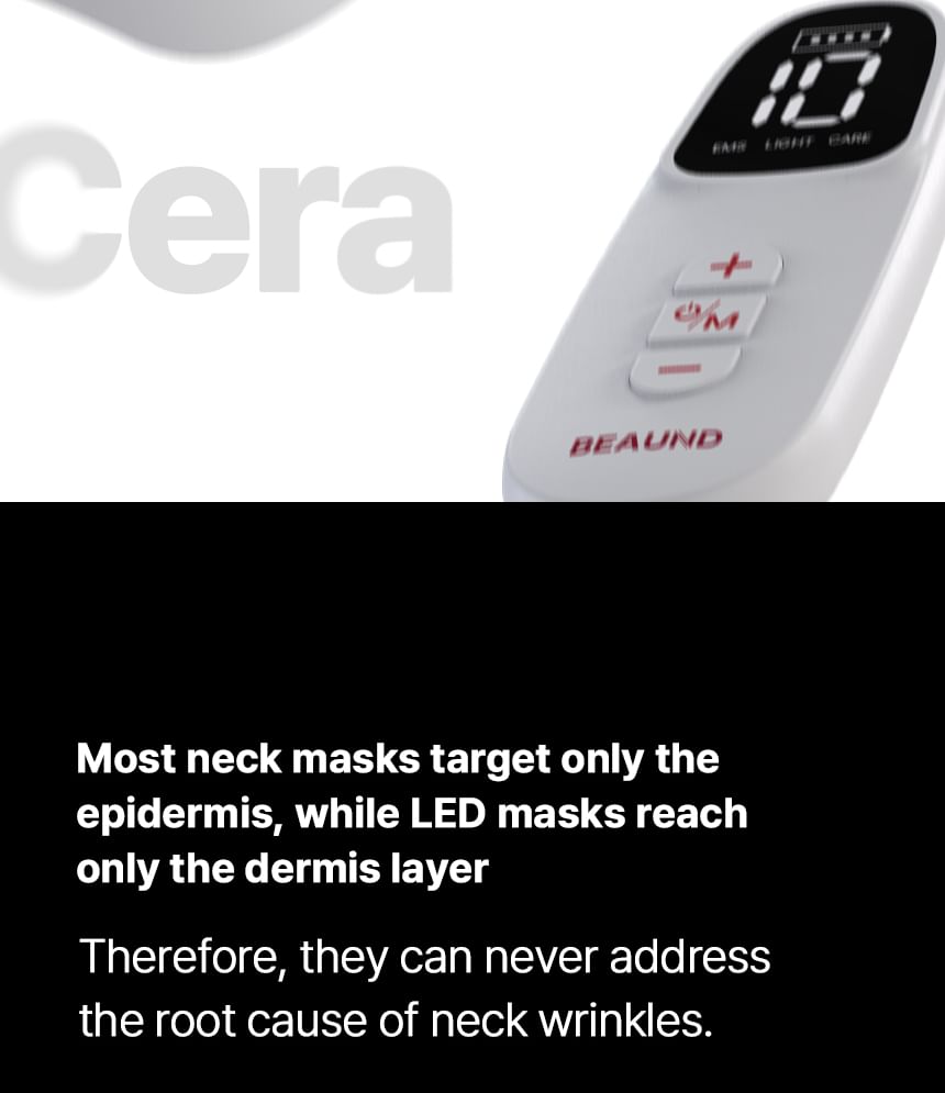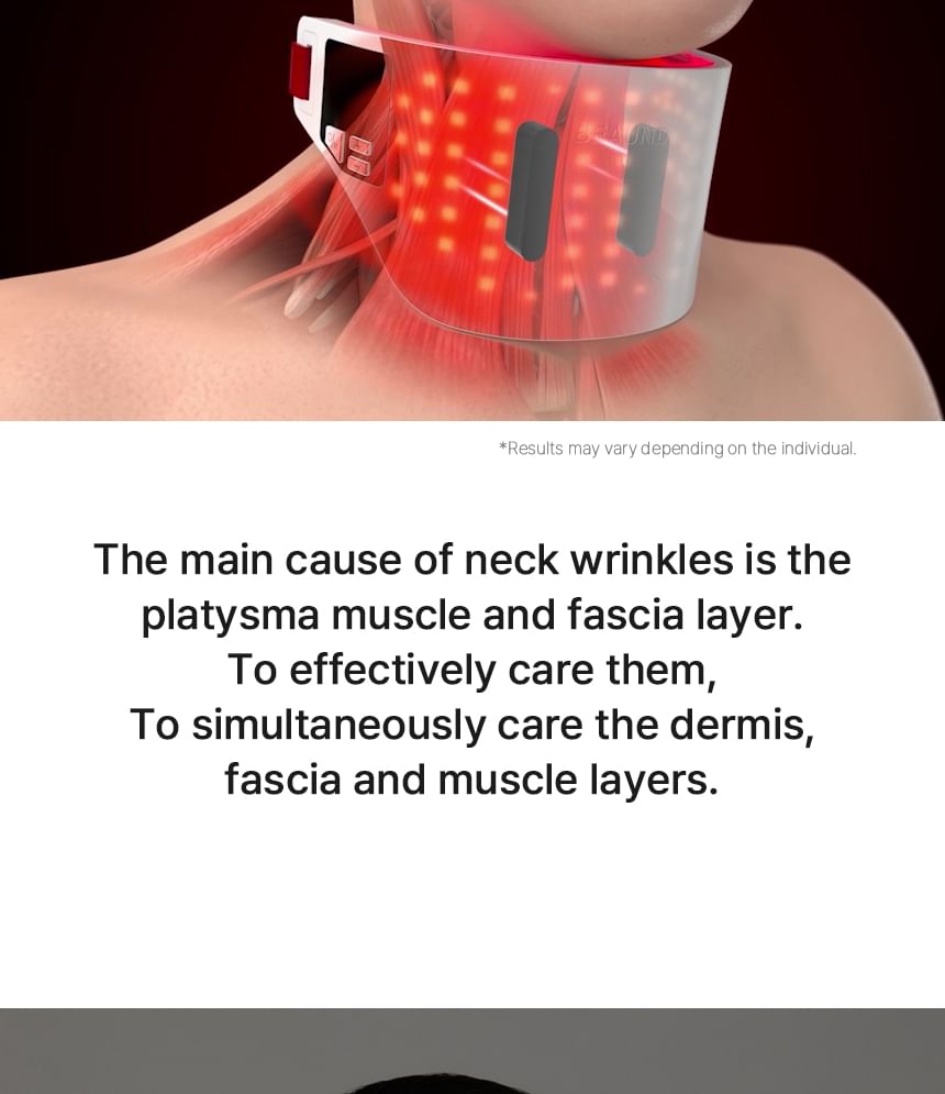 EMS and NIR Close-Range LED increase moisture levels and improve elasticity, effectively targeting sagging neck muscles.