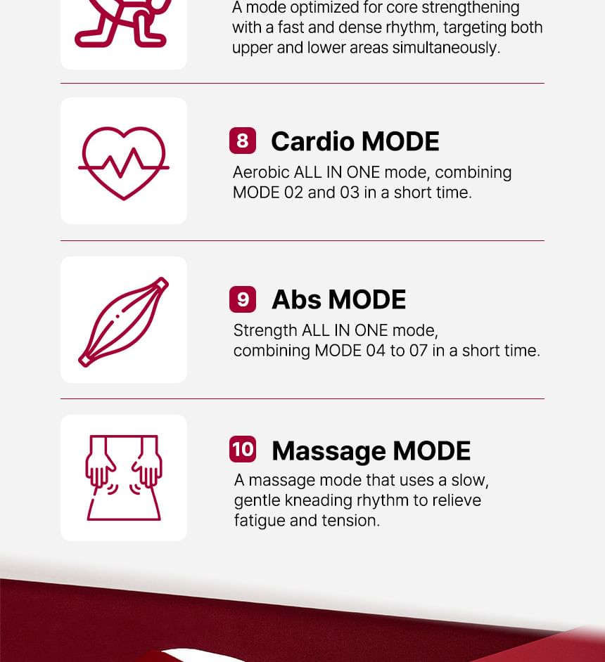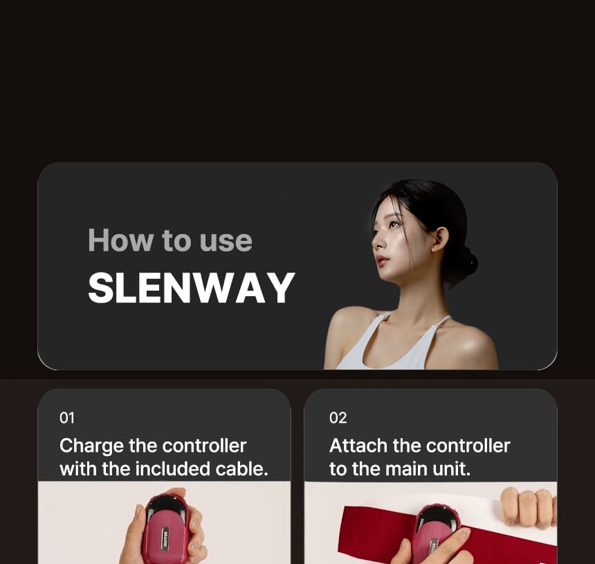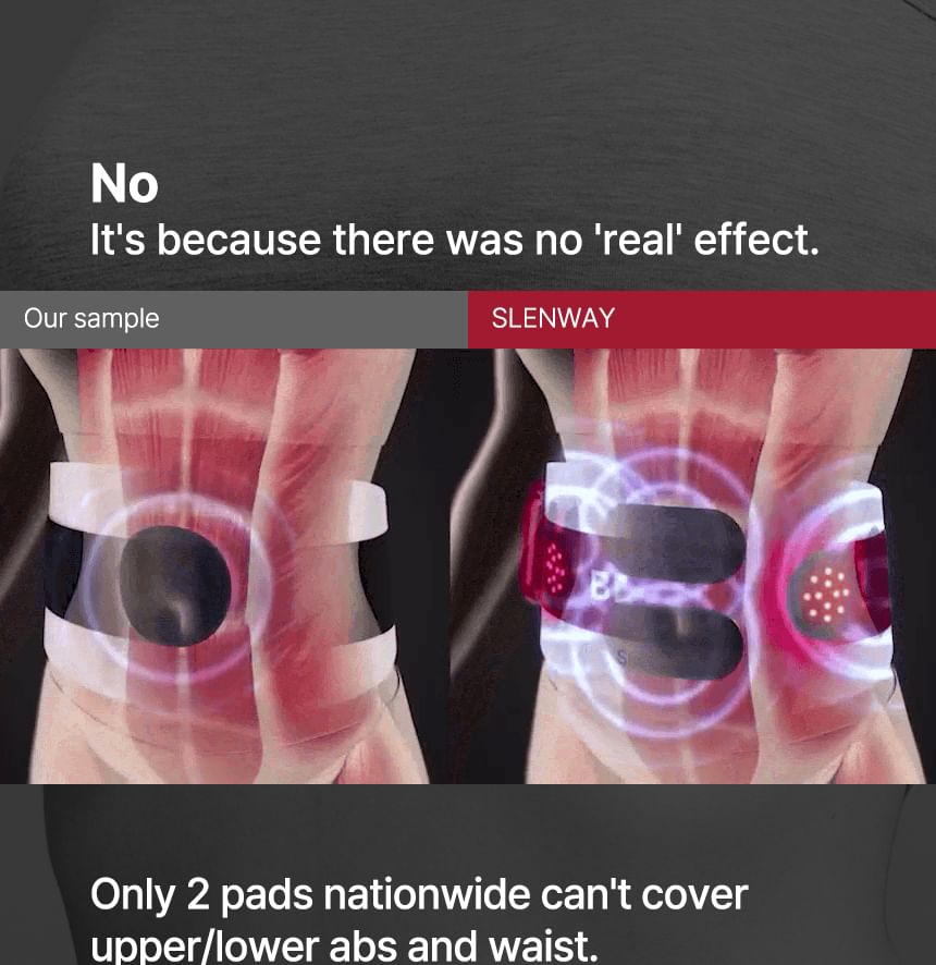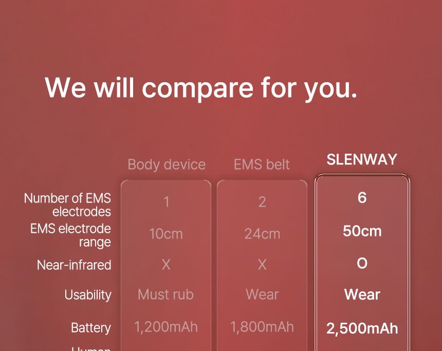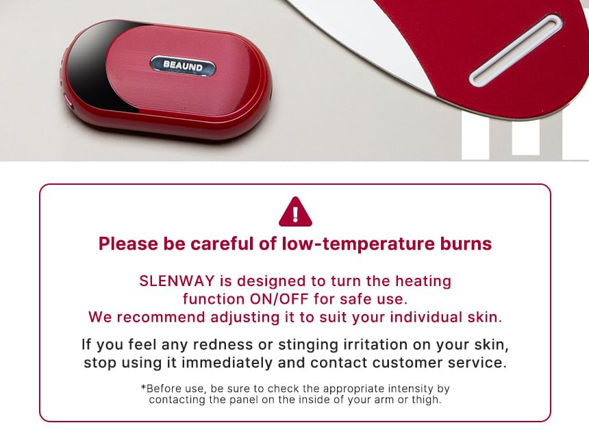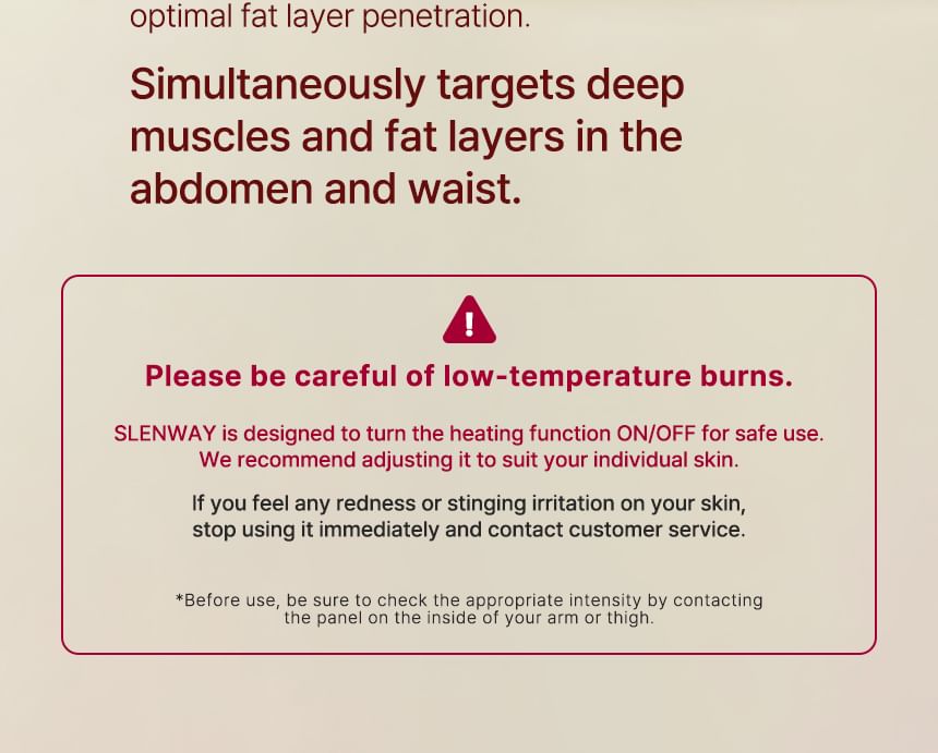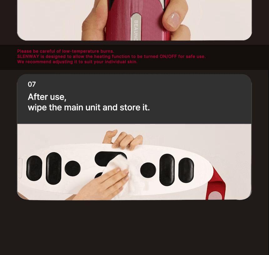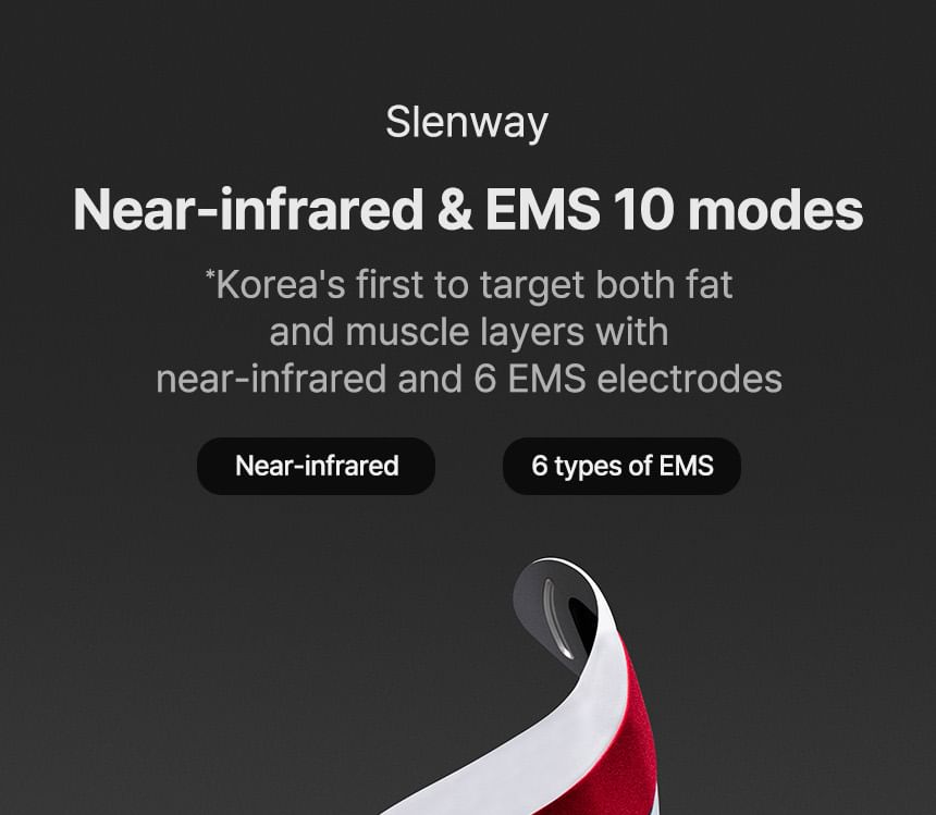 This Slenway device with close-range LED and a total of 6 EMS settings for simultaneous skin tightening and muscle stimulation.