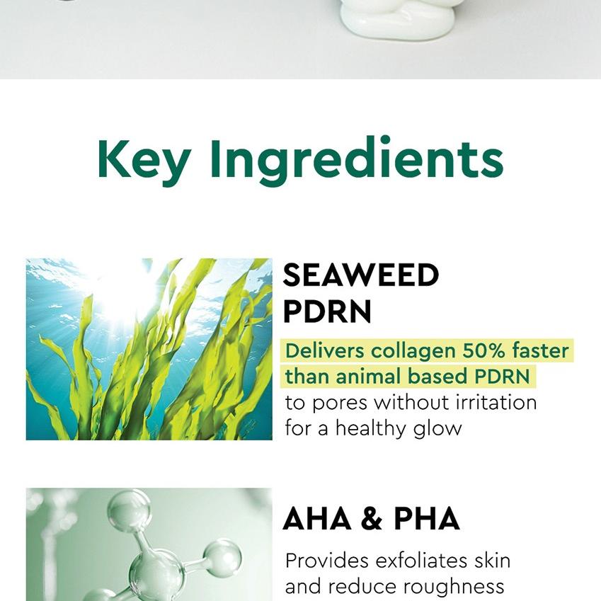 Contains seaweed-based PDRN to provide moisturizing and deep pore cleansing.
