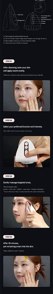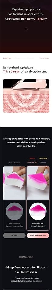 42°C Thermal Massage, Red LED Light, and 8,000rpm Ultra-Fine Vibration help deliver active ingredients deep into the skin.