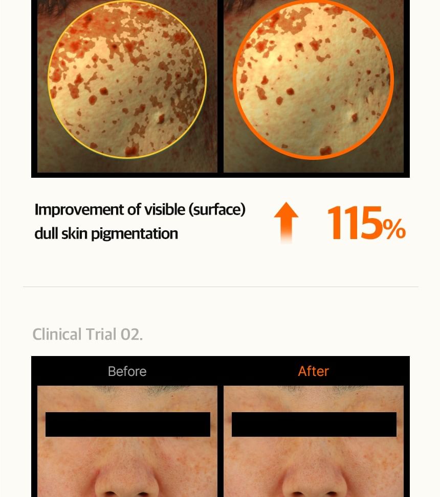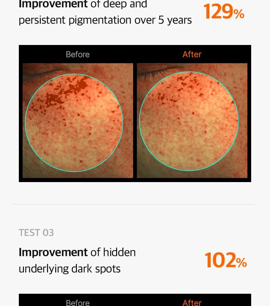 - Two Patented Ingredients — Exclusive dual patents focused on melanin inhibition, spot care, and reduction of existing pigmentation (including stubborn, long-term dark spots).