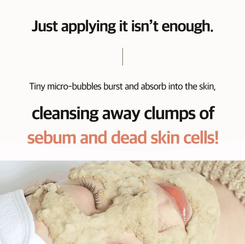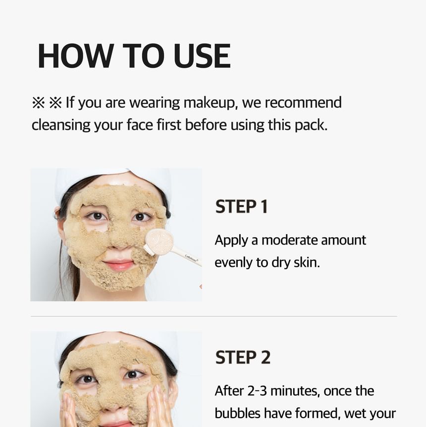 1. Apply an appropriate amount on dry, clean face and leave it on for 2-3 minutes until bubbles are formed.