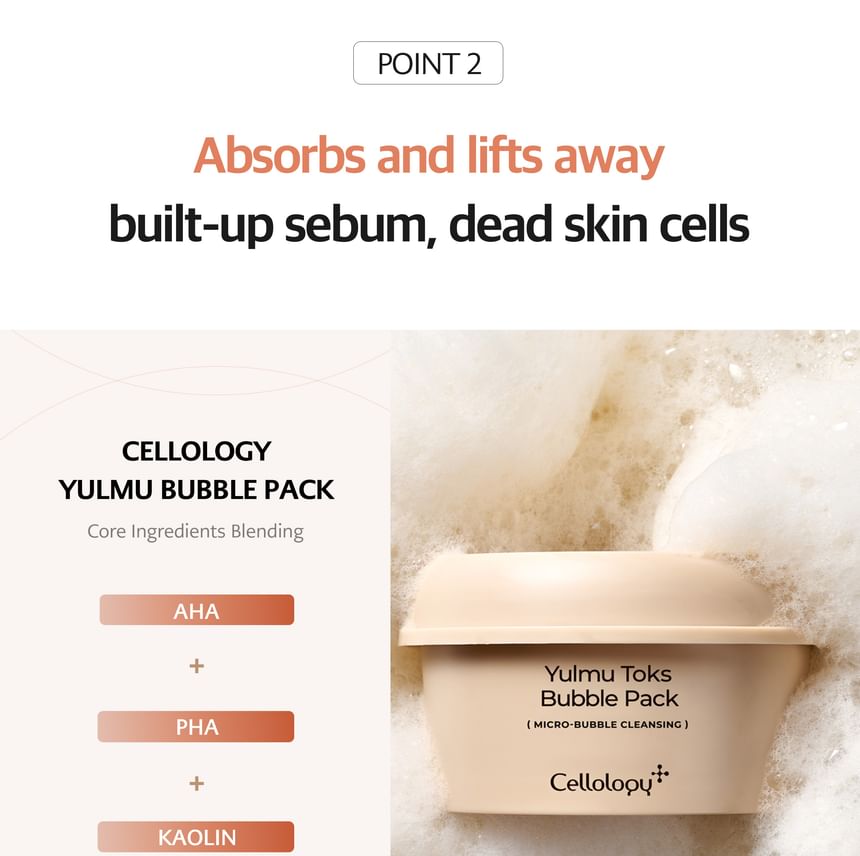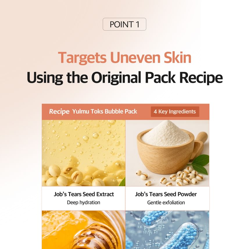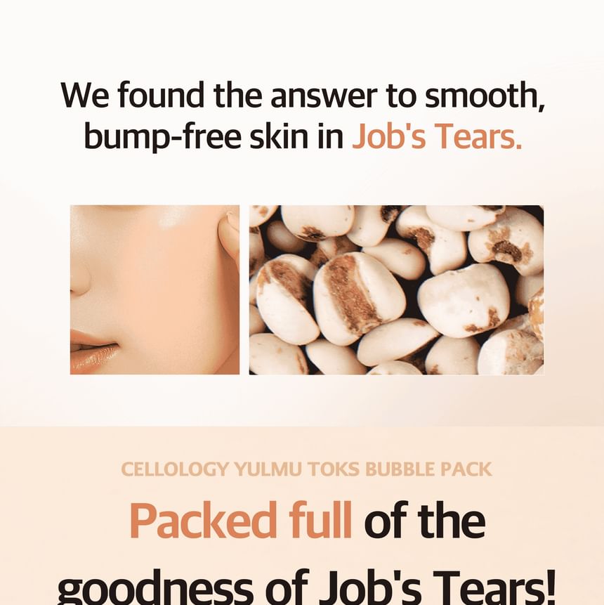 A bubble pack that is infused with 150,000ppm of Job’s Tears Water and Job’s Tears Powder to help smooth the skin.
