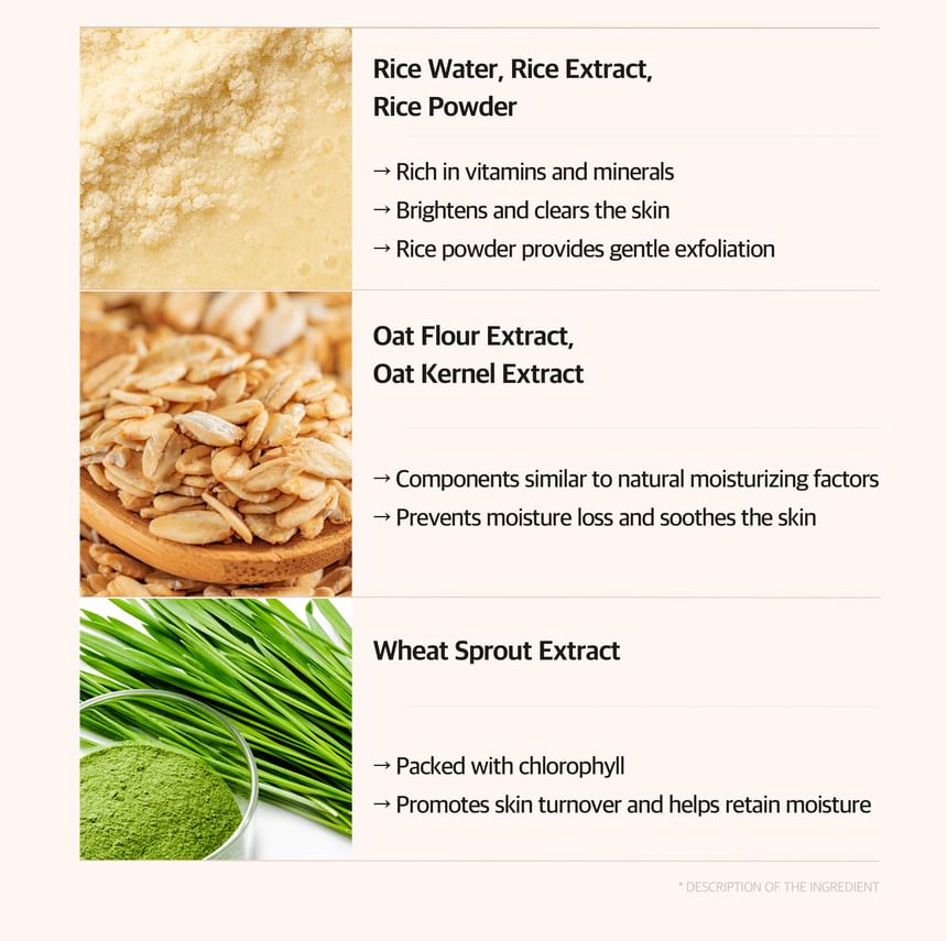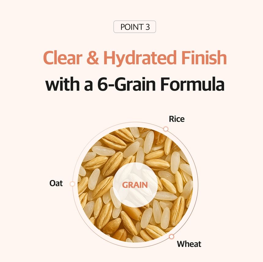 A formula with 6 types of grains that moisturizes and soothes irritated skin.