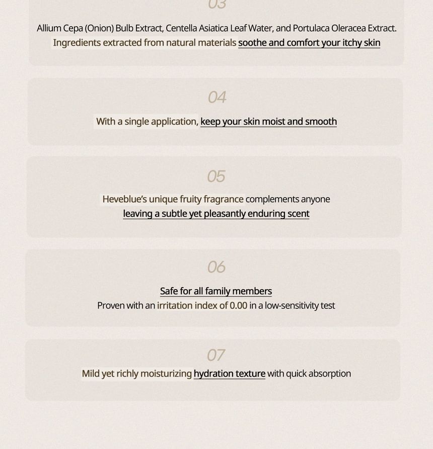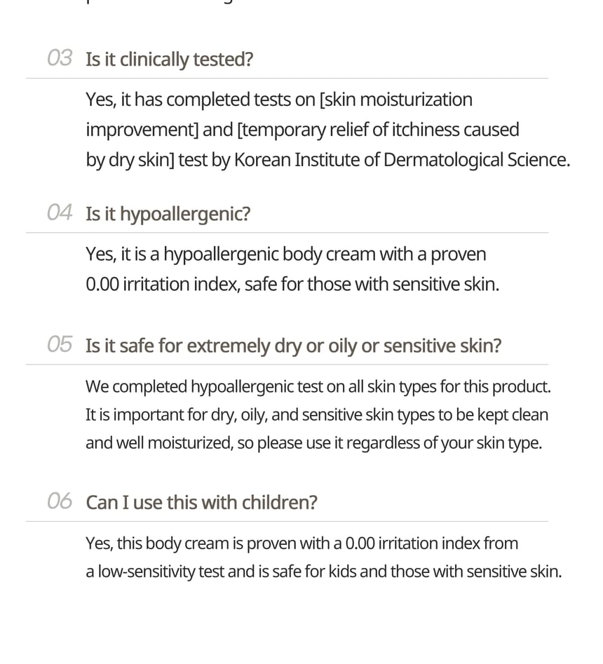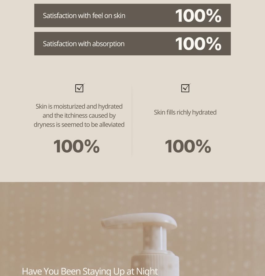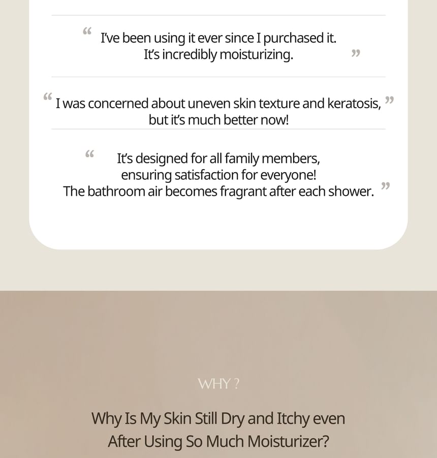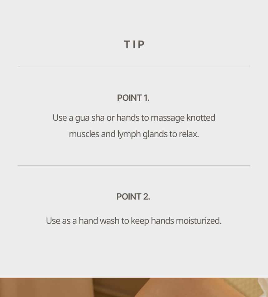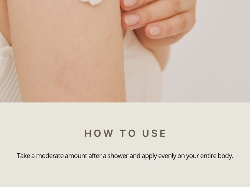 - After shower, apply a proper amount onto the body and gently massage for absorption.