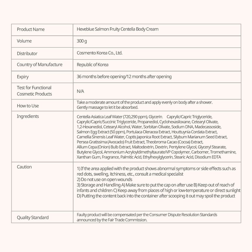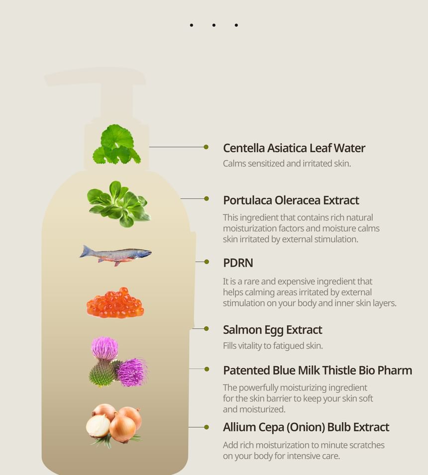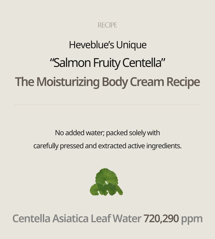 - Nourish the body with this body cream enriched with Salmon and Centella.
