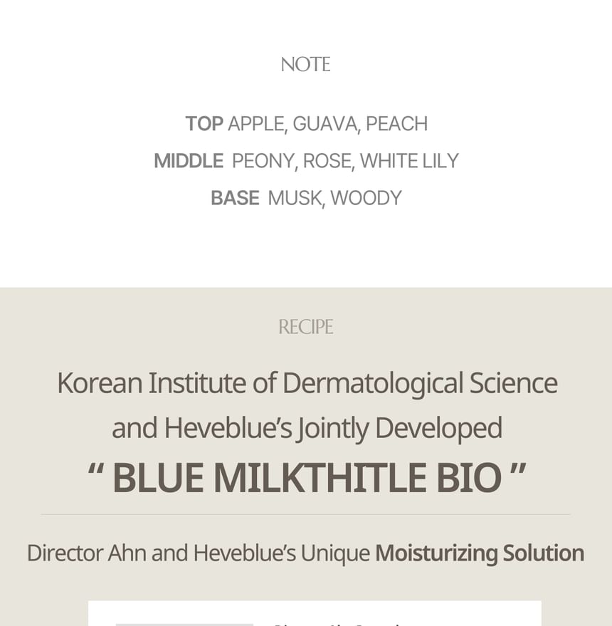 - Blue Milkthitle Bio, a patened material from HEVEBLUE helps filling up moisture deep into the skin.