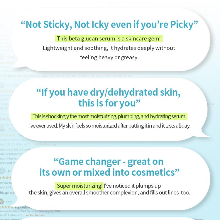 With 400,000PPM of pure beta-glucan, it soothes rough and sensitive skin from external stress, and supplies rich nutrition and moisturization, helping to strengthen the skin barrier.