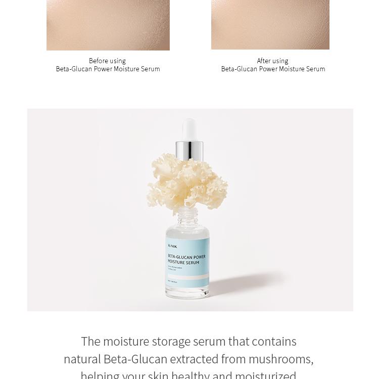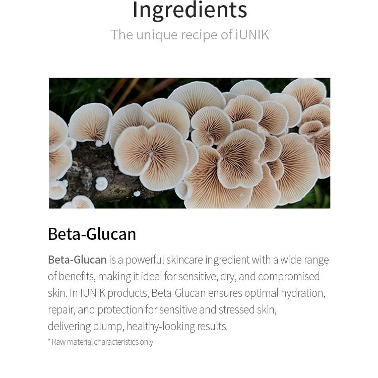 It contains beta-glucan, a raw ingredient extracted from mushrooms, which provides high moisturizing power and nutrition to the skin, leaving it clear and healthy.