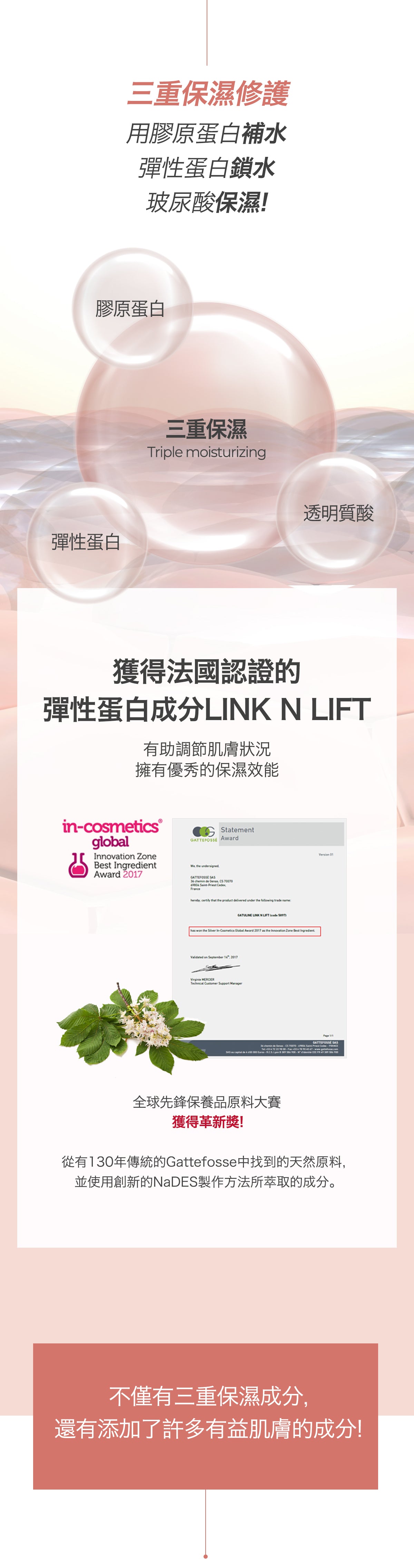 LINK N LIFT 成分經臨床證明具有調理肌膚和保濕效果
