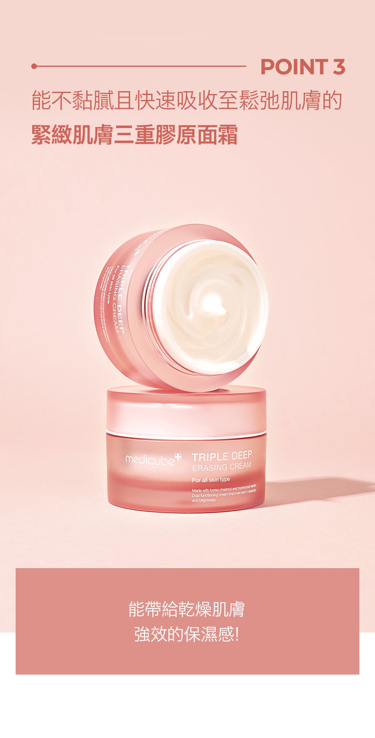 告別表面保濕,由內而外為乾燥肌膚補水。這款乳霜含有膠原蛋白、彈性蛋白和透明質酸,可保持皮膚水分,從而減少皺紋,從而使皮膚看起來豐滿。