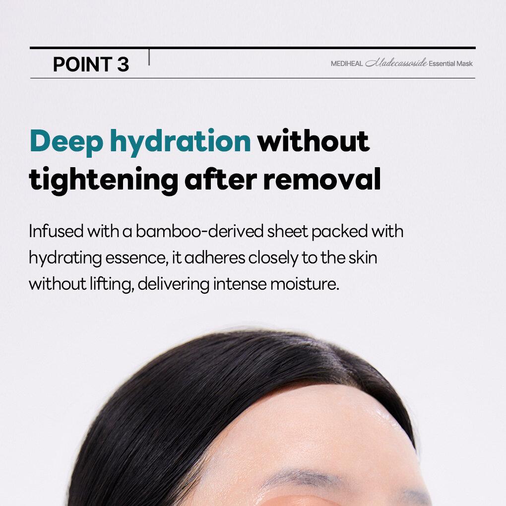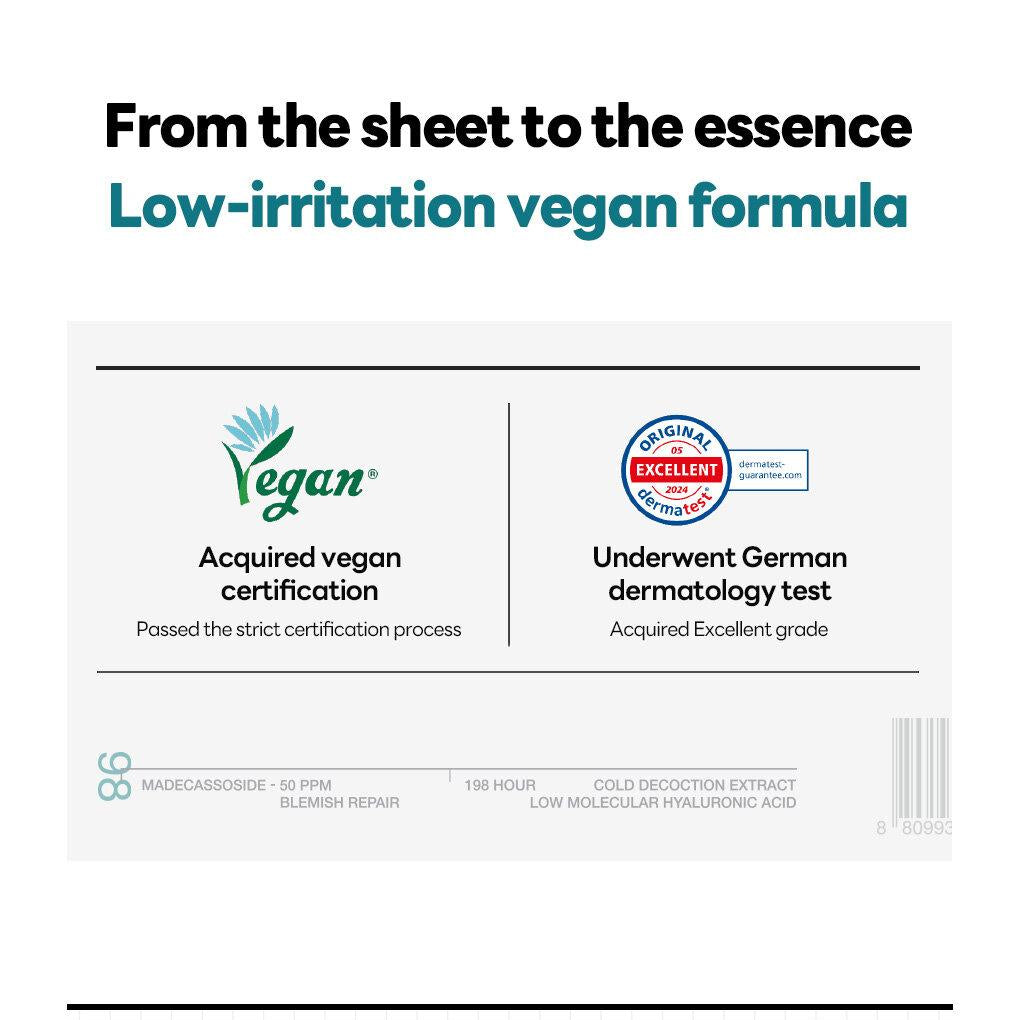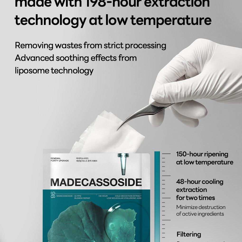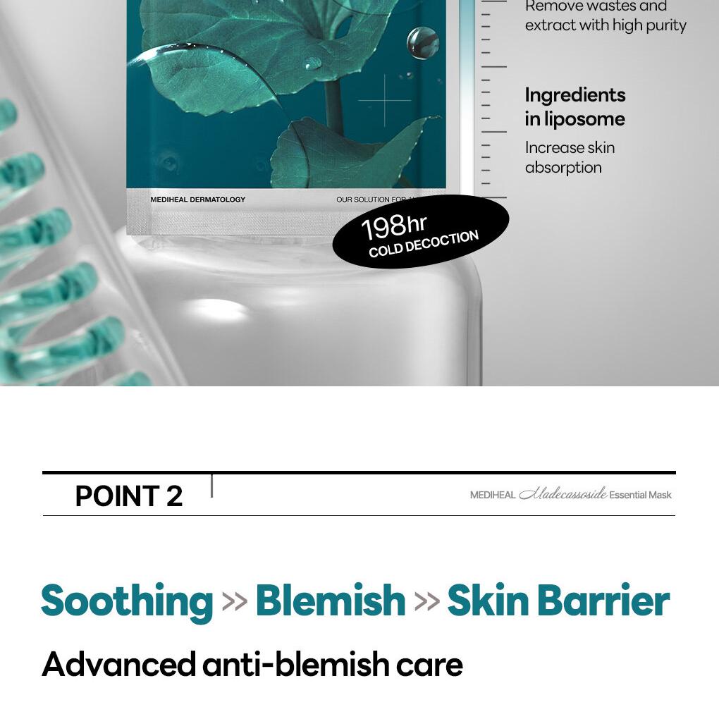 Provides soothing of red skin, reduces skin temperature, improves melanin area, skin tone, skin moisture content, moisture barrier, and skin texture.