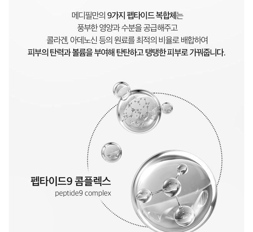 Contains Peptide 9 Complex, containing 9 kinds of peptides, to help boost skin elasticity.