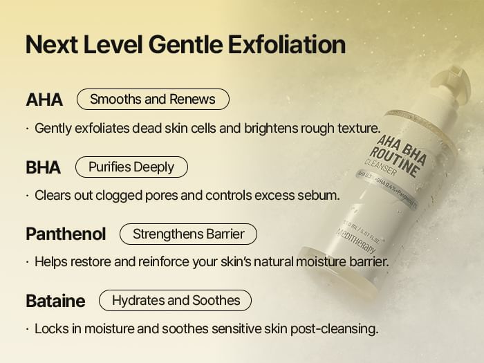 - Formulated with AHA and BHA to exfoliate and gently remove dead skin cells, promoting clearer, smoother skin.