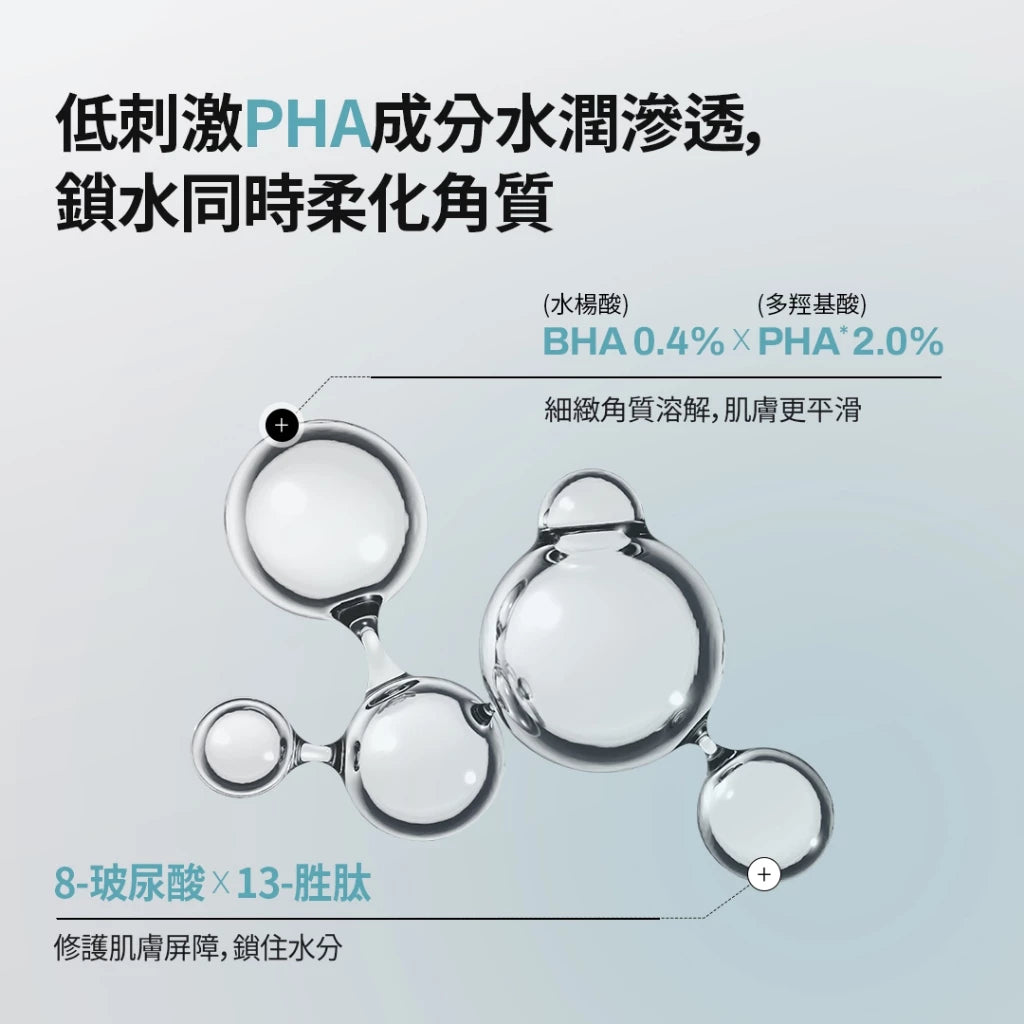 • PHA(葡萄糖酸內酯):提供溫和的化學去角質,同時具有保濕功效,可去除死皮細胞而不會引起刺激,適合敏感肌膚。
