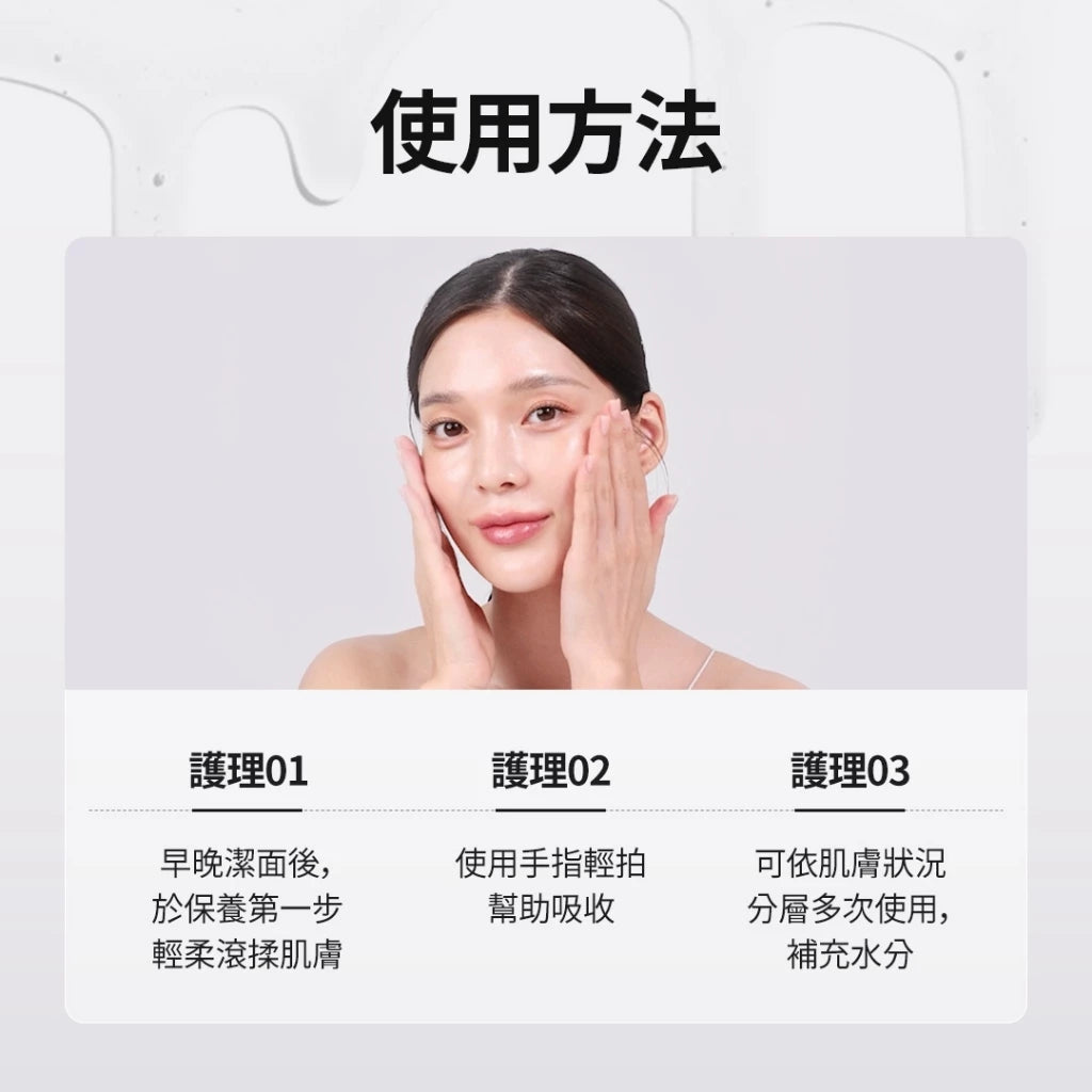 • 保濕與修護:富含 8 種透明質酸 13 種胜肽複合物,提供多層次的深層補水,強化肌膚屏障,使皮膚更緊緻、有光澤。