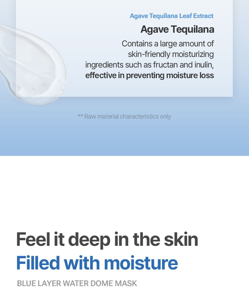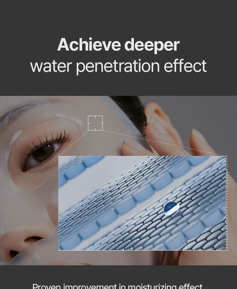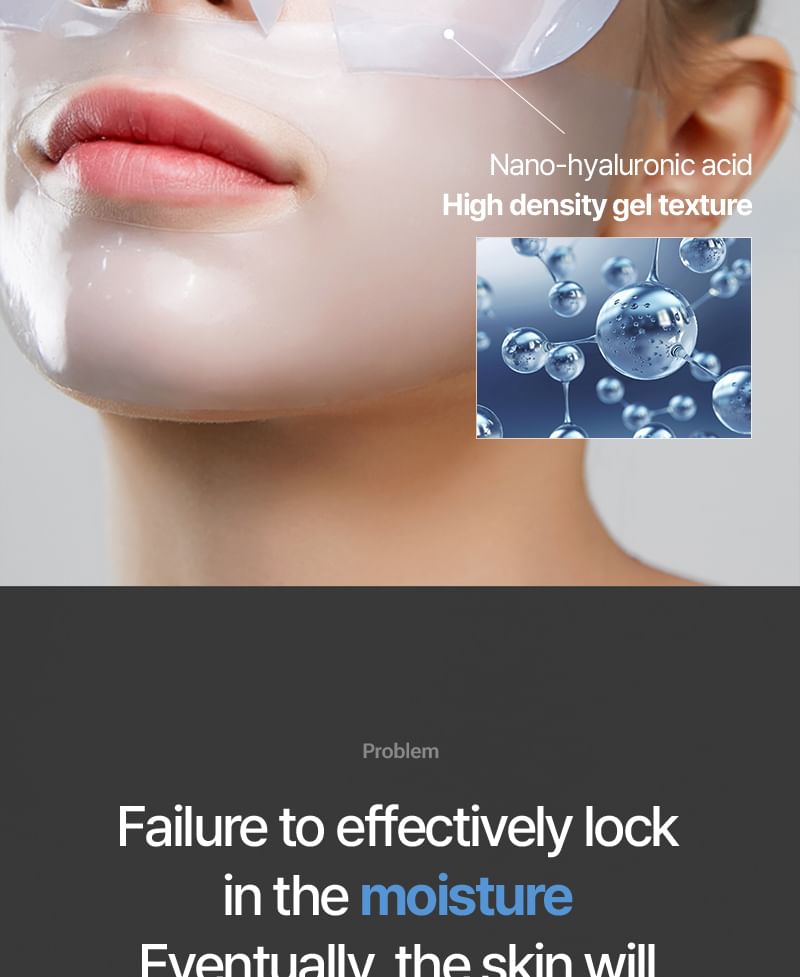 Hydrating gel material sheet mask that boosts hydration in skin and improve skin's moisture retaining ability.
