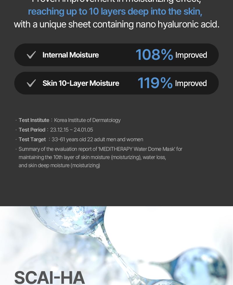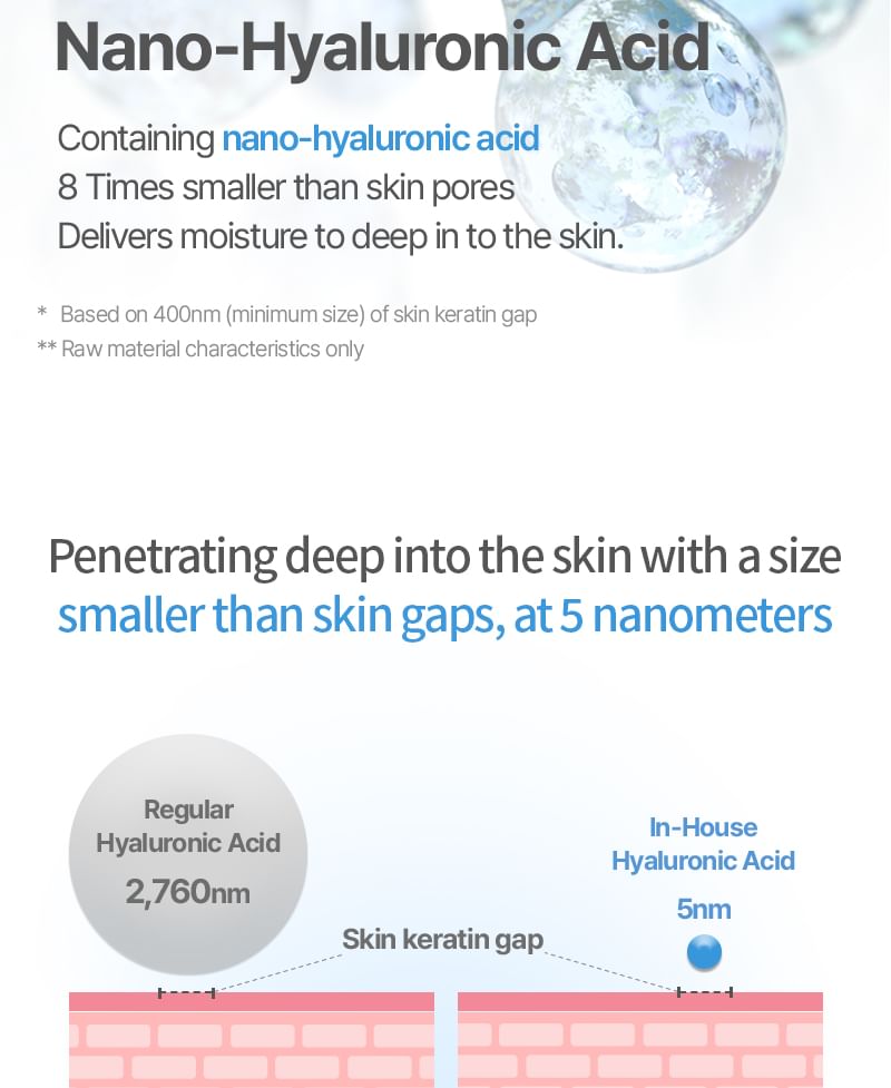 Contains Nano-Hyaluronic Acid with size of 5nm that penetrates as deep as 10 layers of skin and fill with hydration.