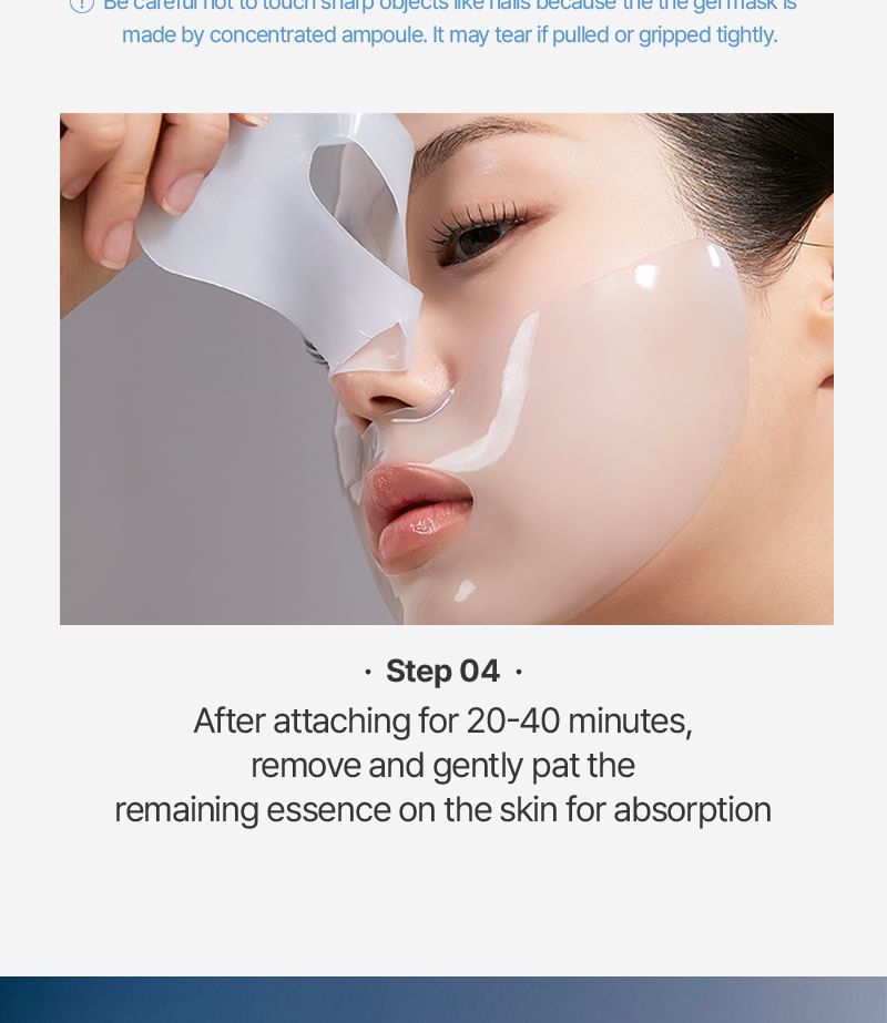 Apply the gel mask sheet on clean skin after using toner. Remove after 20-40 minutes and gently pat in the remaining essence.