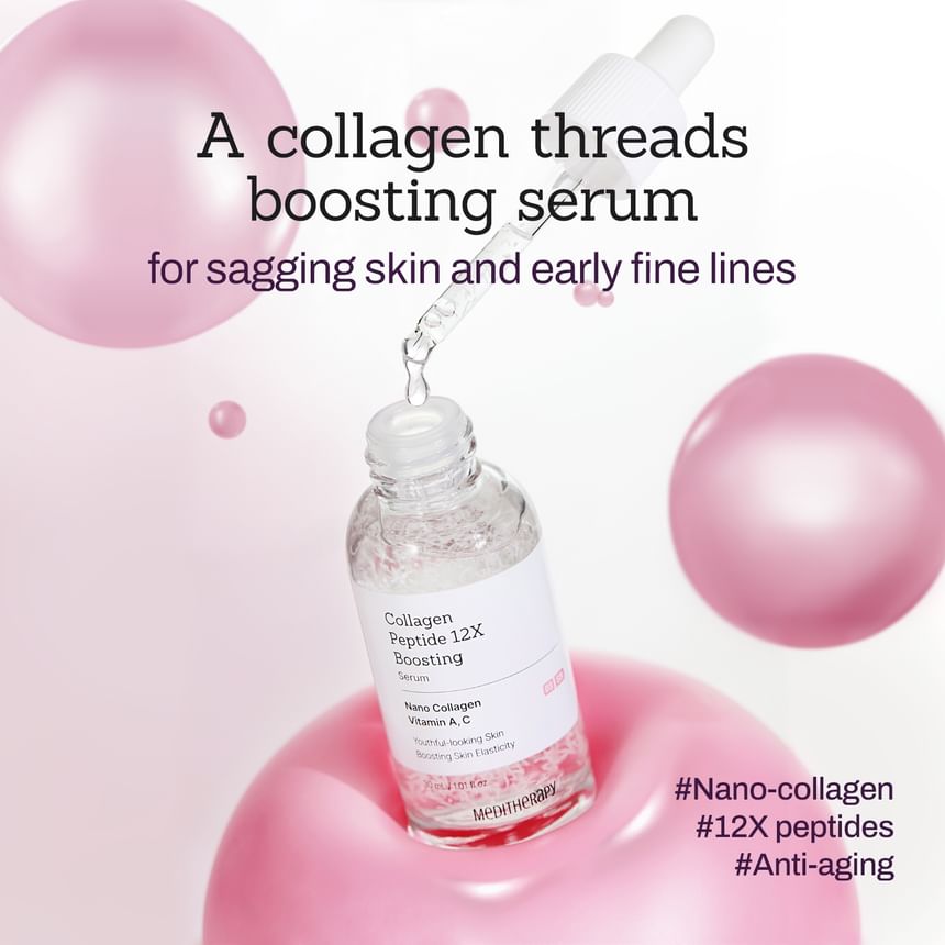 An anti-aging serum that helps smooth out fine lines and wrinkles, boost skin elasticity and deliver a lifting effect to face for a more youthful complexion. Infused with Hydrolyzed Collagen and Collagen Extract with low molecular weight that penetrate deeply to support skin absorption. Contains a complex of 12 types of Peptides, Vitamin C and Retinol to promote collagen production, improving skin firmness and elasticity. The lightweight, non-sticky texture absorbs quickly, delivering a burst of hydration for a smooth, dewy finish. Dermatologically tested, suitable for sensitive skin.