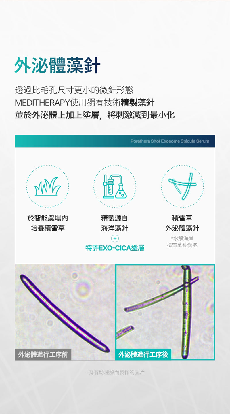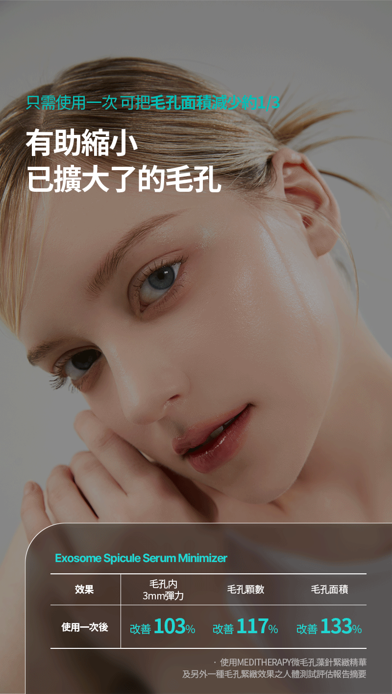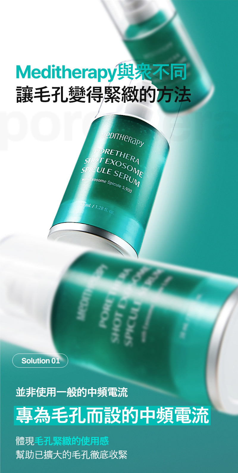 - This serum contains Exosome-coated Spicules to help tighten enlarged pores.