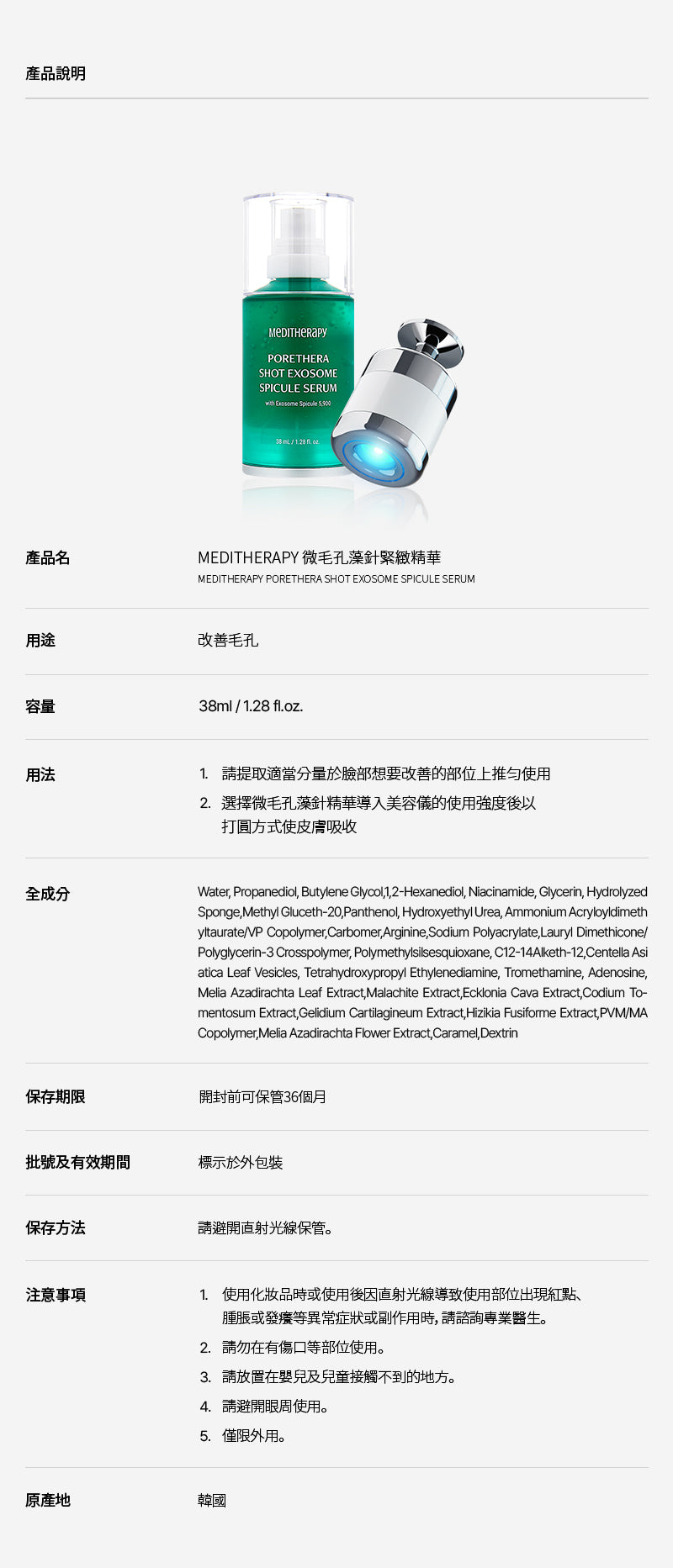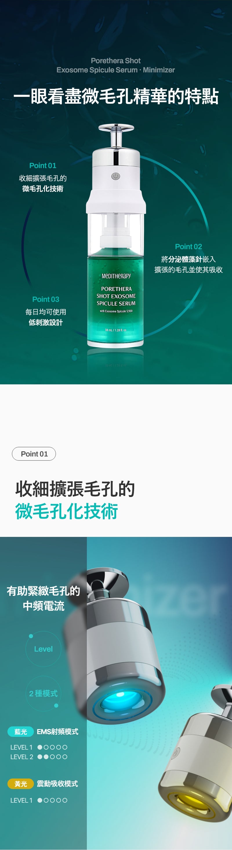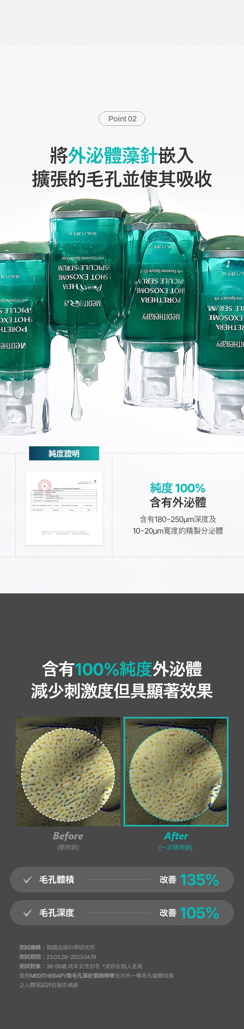- This serum contains Exosome-coated Spicules to help tighten enlarged pores.