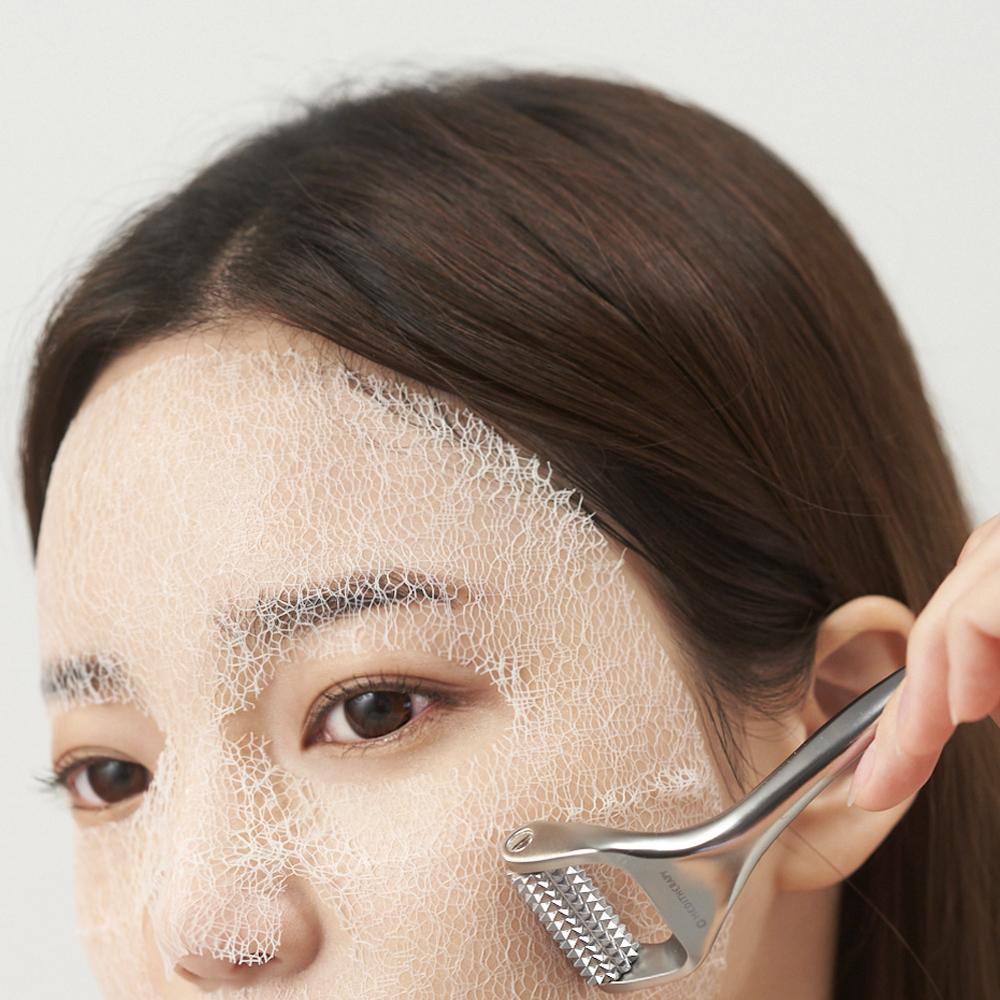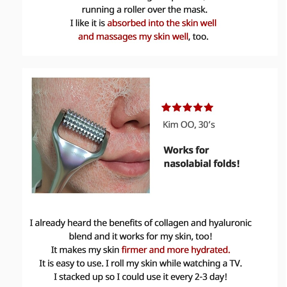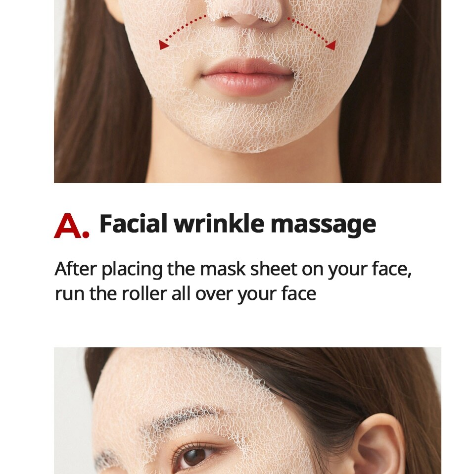 Roll the device on a mask sheet. Collagen and hyaluronic acid will be absorbed better into your skin.