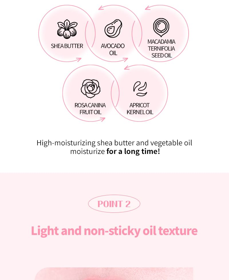 Contains shea butter, avocado oil and macadamia integrifolia seed oil to provide deep hydration.