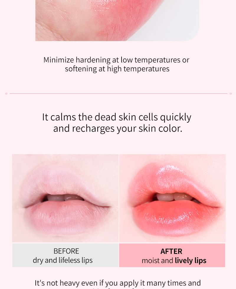 The texture highly adheres to lips and lasts for a long time, without leaving a sticky feeling.