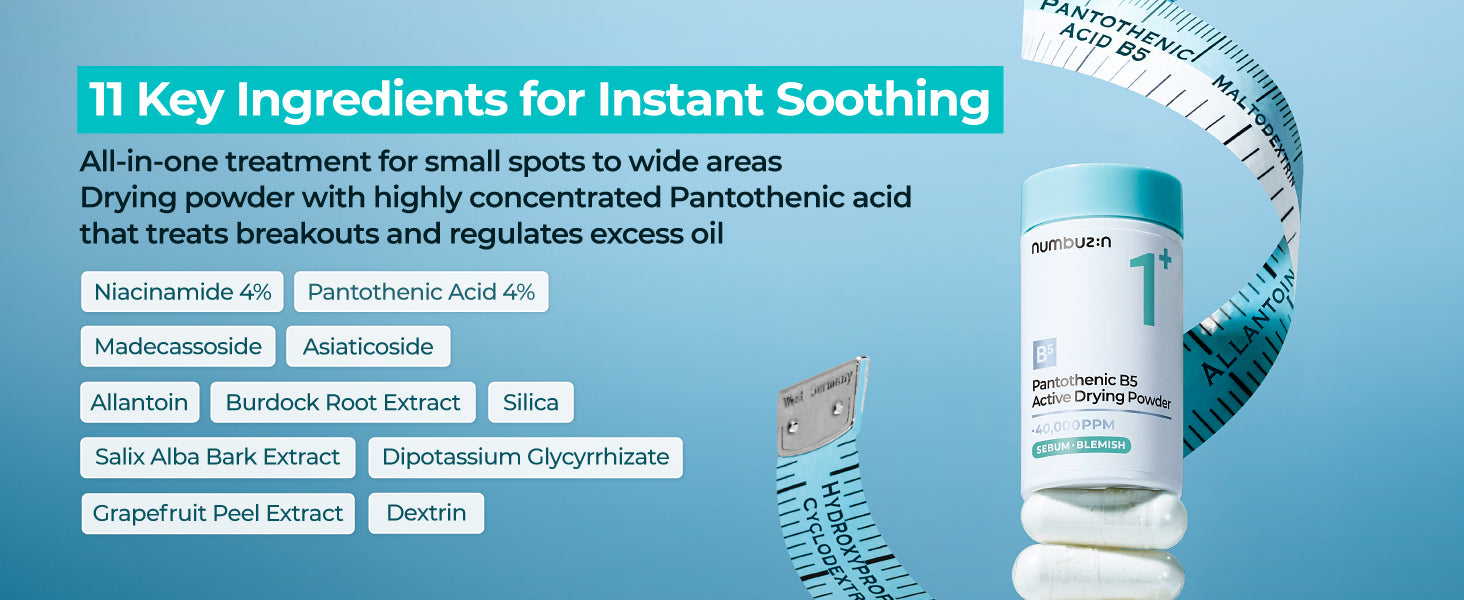 - Enriched with highly concentrated pantothenic acid and 11 soothing ingredients, including niacinamide and madecassoside. Free from harsh active ingredients, it provides gentle care without clogging pores or drying out the skin. Effectiveness is enhanced by 166.67% when used with numbuzin No.1 pantothenic acid cream.