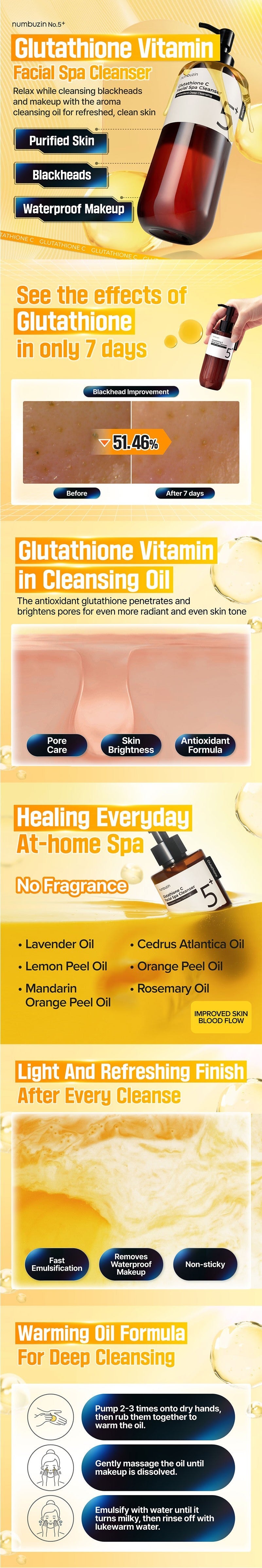- Full cleansed and refreshed skin with the synergy of glutathione, vitamins, and detoxifying oils