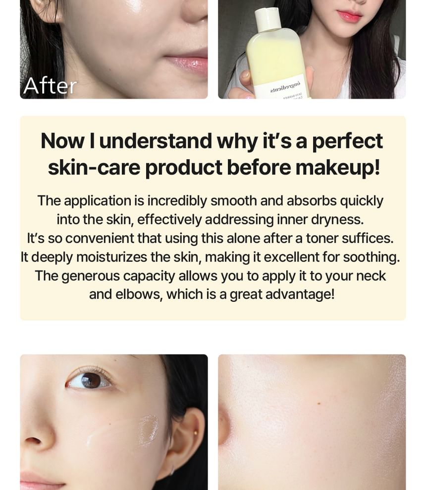 This lotion gives a definite soothing effect, strengthens the skin barrier, and creates a moisture barrier for glowing skin.