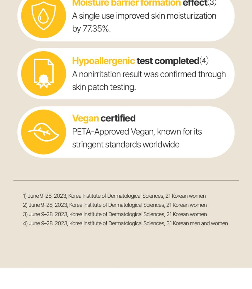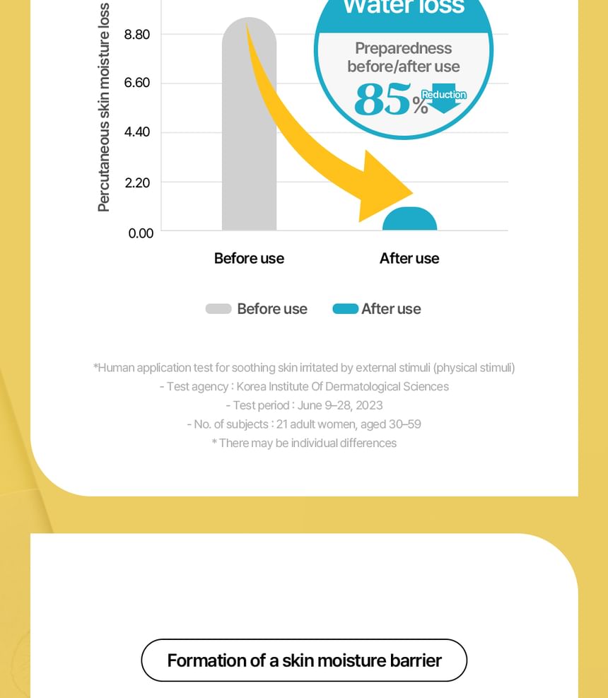 66.63% reduced skin irritation, 84.72% reduced moisture loss, and 77.35% improved skin moisturization tested.