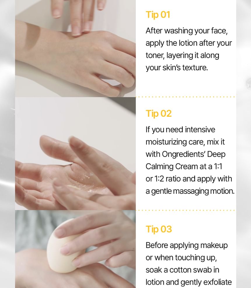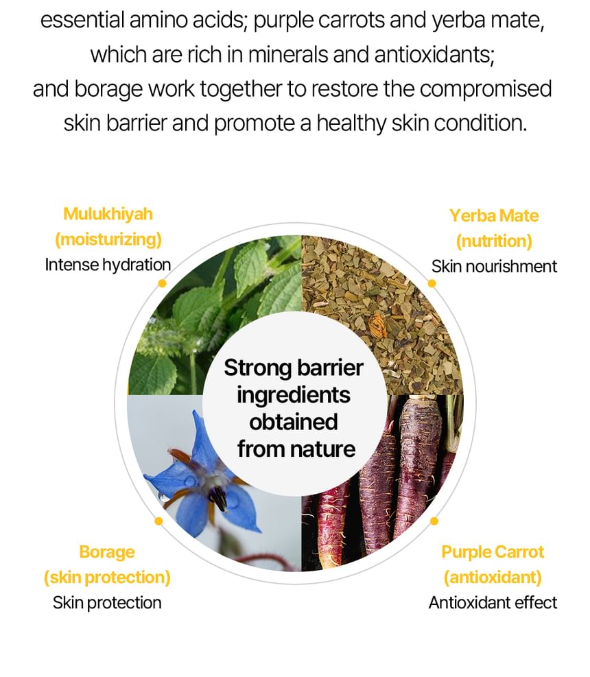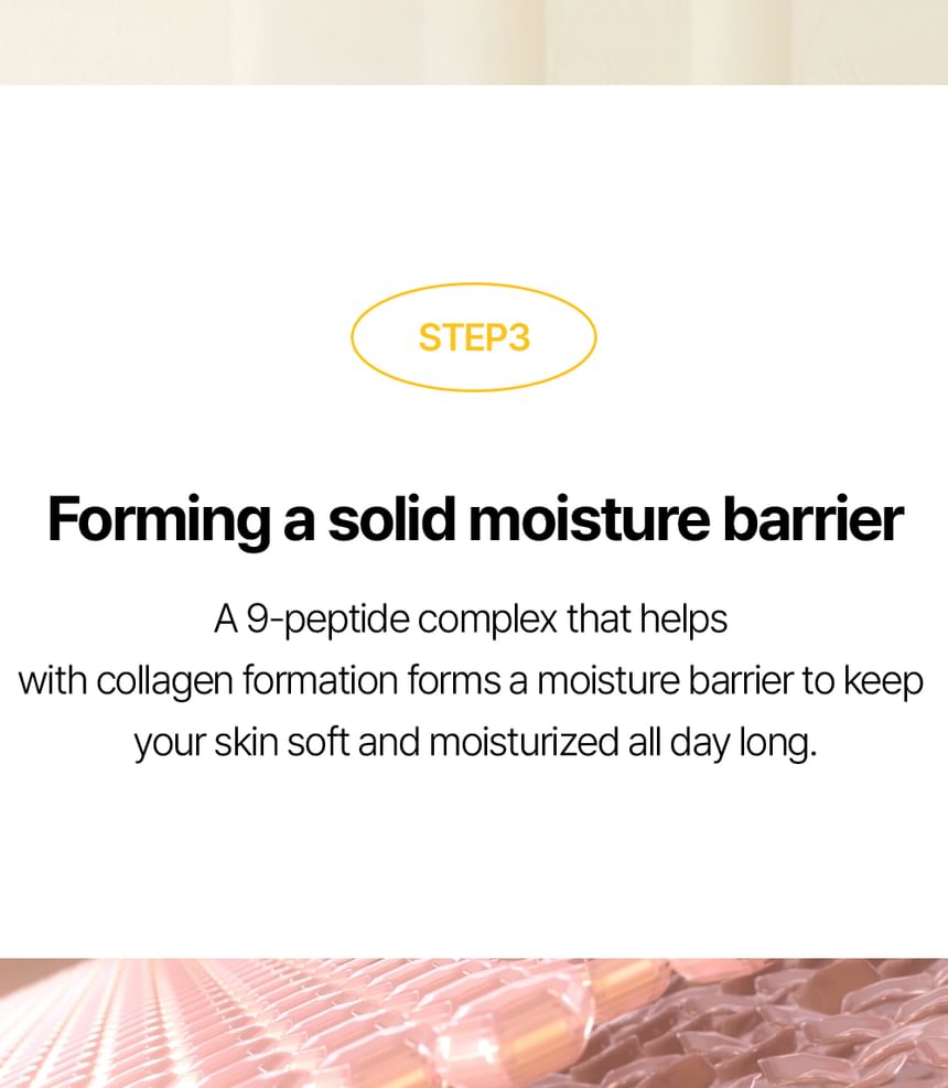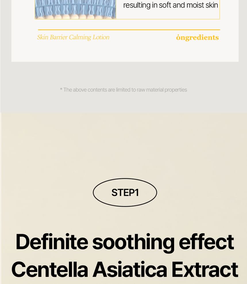 Three-step system of caring for tired skin with Centella Asiatica Extract offers skin soothing, patented technology NC P-Complex strengthens the skin barrier and the 9-Peptide Complex that forms a moisture barrier, resulting in soft and moist skin.