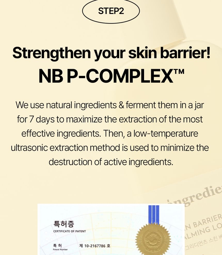 This hypoallergenic lotion is formulated with patented ingredient NB P-Complex and 9-peptide complex to strengthen the skin barrier and moisturize skin. The vegan formula also contains centella asiatica and coptis japonica root extracts to soothe dry and irritated skin. Its lightweight, essence-like texture leaves skin feeling smooth, supple and refreshed.