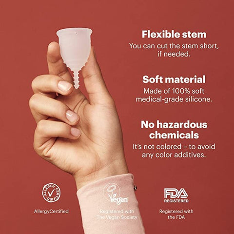 A: Yes, the cup is made from 100% medical grade silicone, which is a material that has been tested for bio compatibility and is safe to wear inside the body. It doesn’t contain BPA or latex. Our menstrual cup is also AllergyCertified and registered with The Vegan Society.