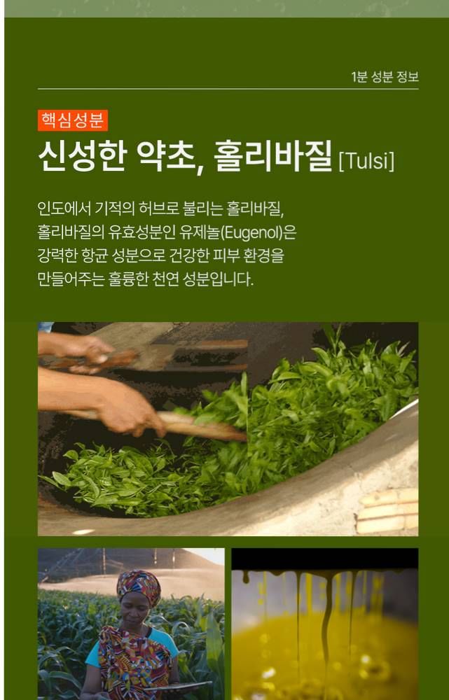 Contains Holy Basil Leaf Extract with a high amount of eugenol to help with skin antibacterial care.