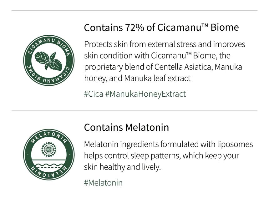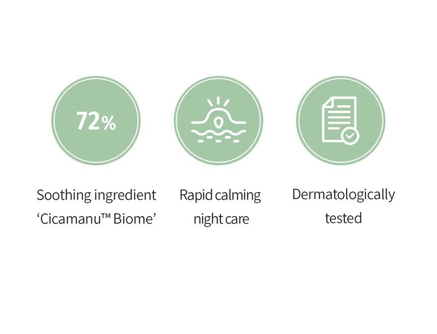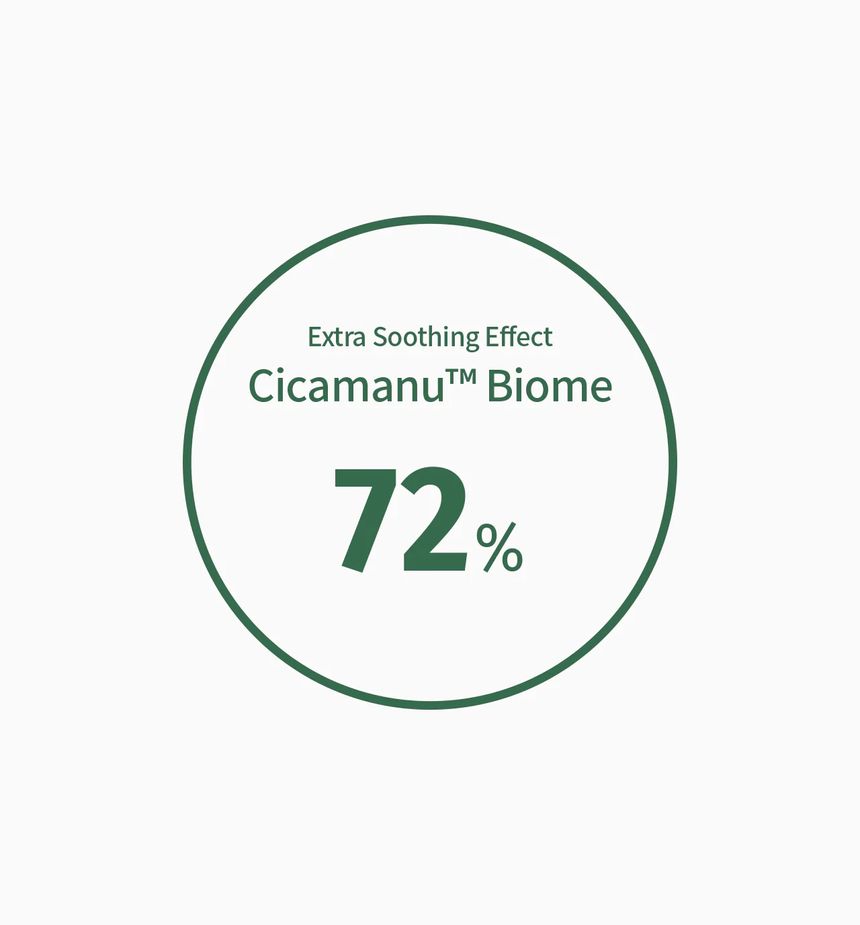 Contains 72% patented Cicamanu™ Biome ingredients with 729,707ppm Centella Asiatica Extract to moisturize and calm skin.
