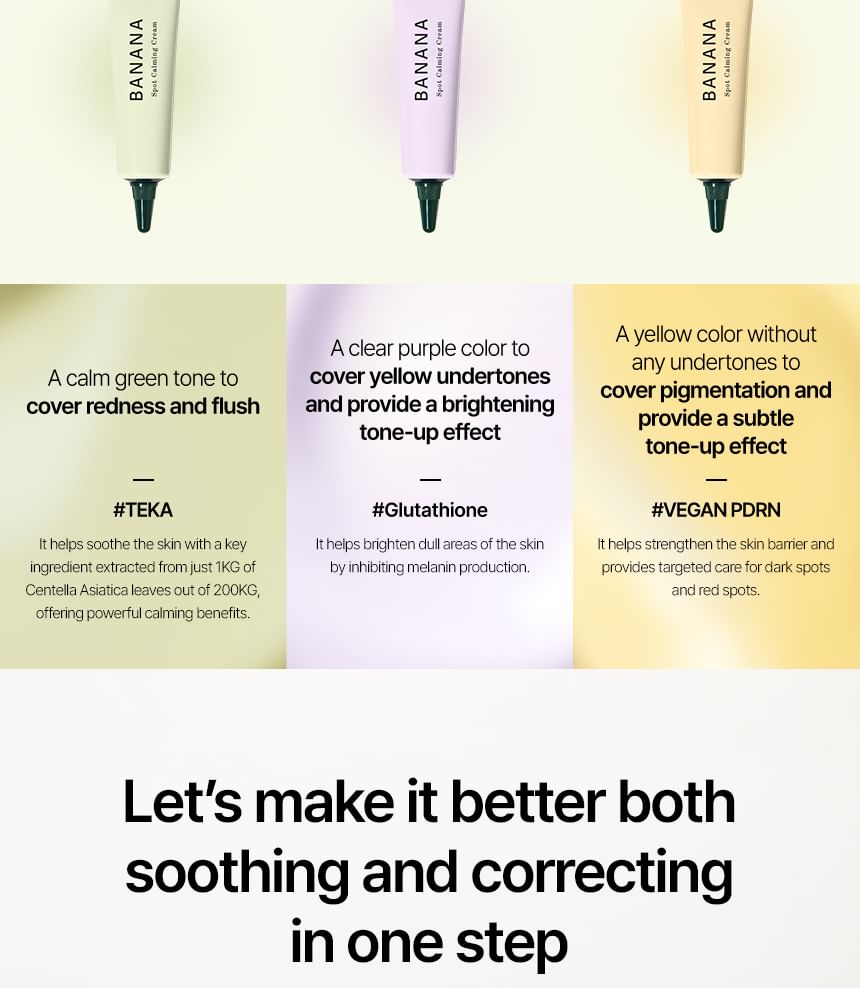 A tone-correcting base with 3 colors for covering different types of skin blemishes and skin redness and helps evening the skin tone.