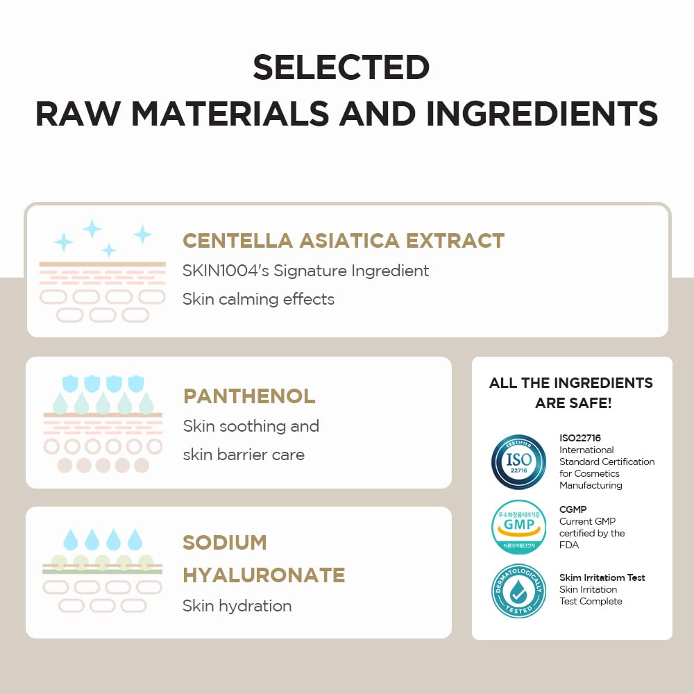 - Centella Asiatica Extract (15,000 ppm) contains active ingredients such as madecassic acid and asiaticoside, which aid in collagen synthesis, promoting excellent wound healing and skin regeneration. It also has soothing properties that help with trouble care.