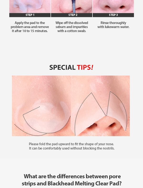 A nose pad that melts the blackhead and sebum clogged in pores.