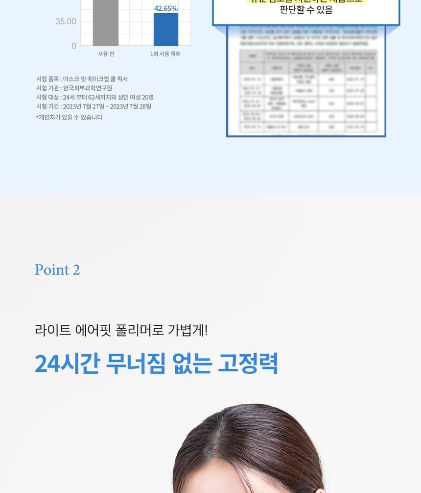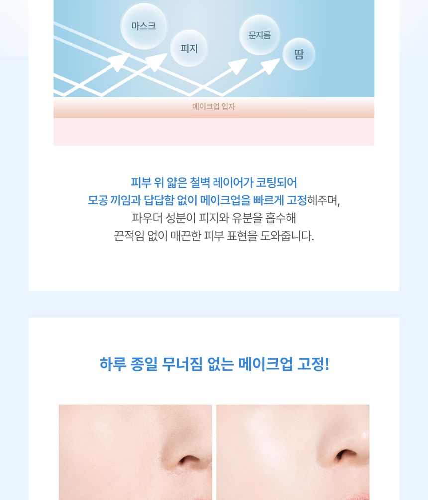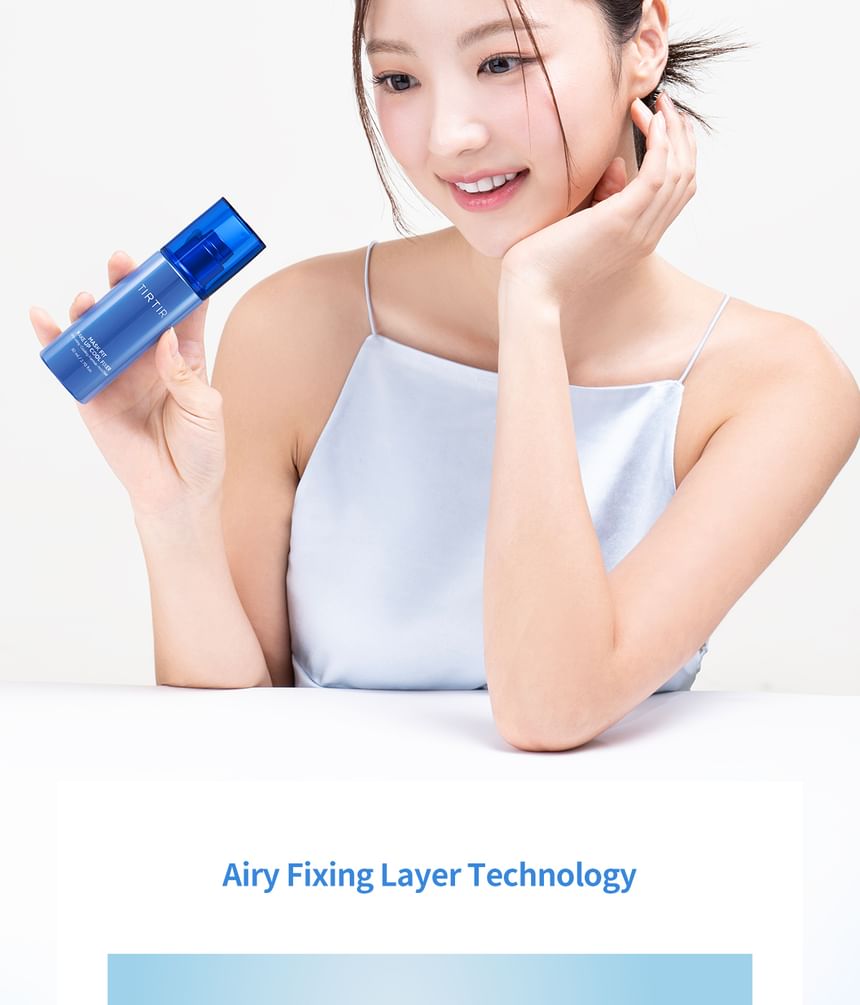 Airy fixing layer technology that helps quickly fix the makeup by the powder formula absorbs sebum and oiliness and helps smooth skin texture without any stickiness.