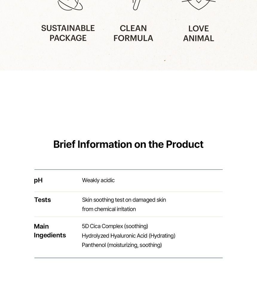 Features 5 types of Cica ingredients to offer mild yet powerful soothing effects.