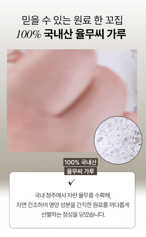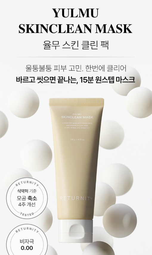 YULMU SKINCLEAN MASK Yulmu (Job’s Tears) Skinclean Mask Targets rough, bumpy skin concerns — cleanse it all at once! Just apply and rinse off, a one-step mask that takes only 15 minutes! Point 01 Remove dead skin cells / Tighten pores / Calm and soothe Simply apply and rinse to solve it all! 15-minute one-step mask!