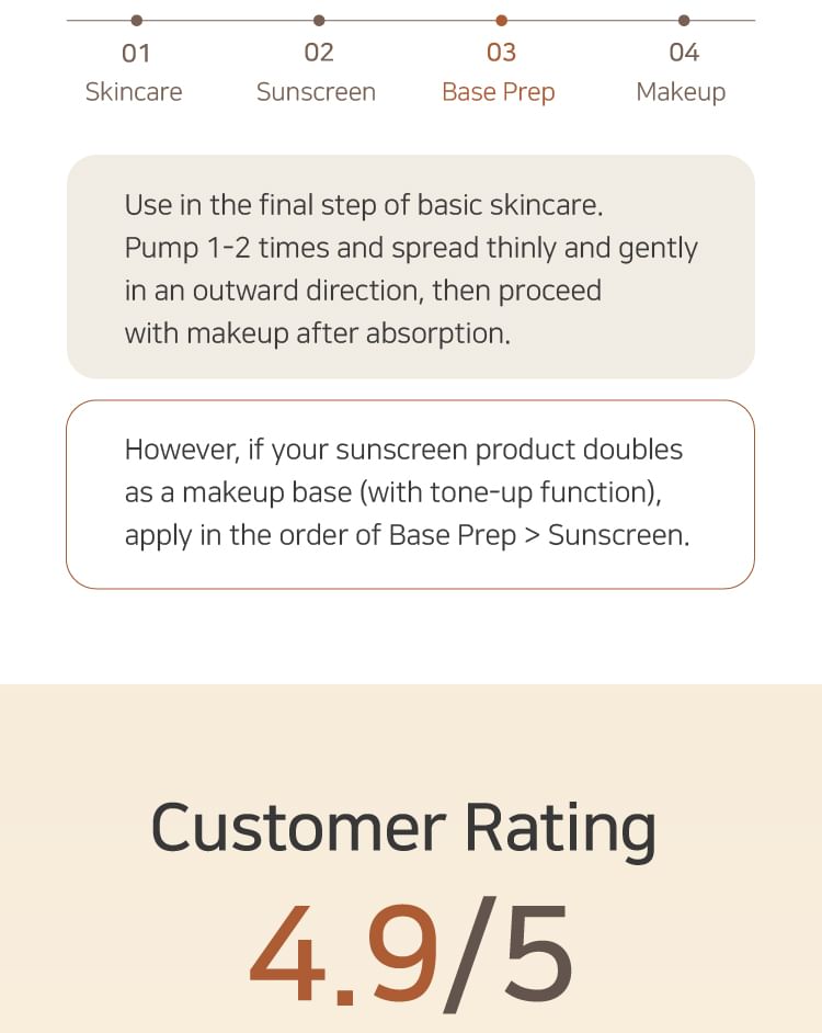 This skin care-infused primer preps your skin for base makeup application. The lightweight formula coming in a serum-like texture is enriched with niacinamide, squalane and adenosine to keep your skin moist, plump and dewy. It also contains various fermented ingredients plus ceramides for barrier-protecting properties.
