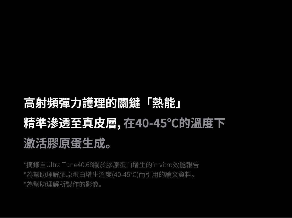 準確滲透到高頻彈力護理的核心"體內熱"真皮層,以40~45°C的溫度激活生成膠原蛋白。