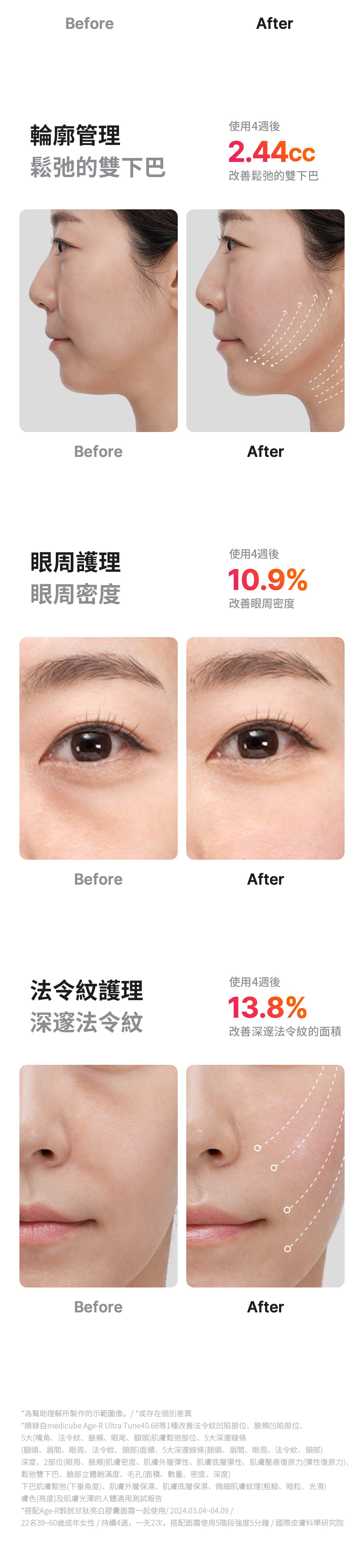 改善臉頰凹陷/皮膚鬆弛/重塑立體輪廓,法令紋深、眉毛下垂、雙下巴
